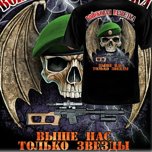 Мужская футболка русская россия путин военный интеллект GRU спексназ футболки Череп