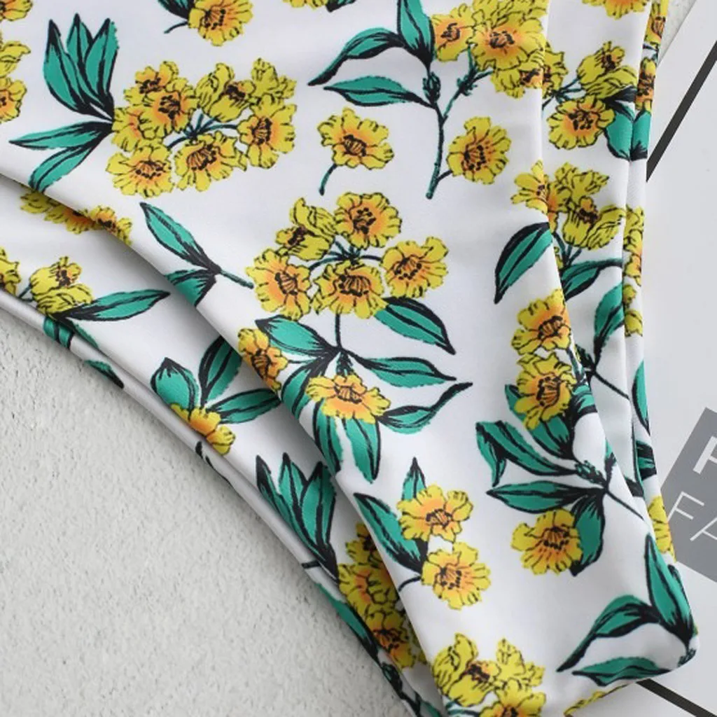 Сексуальные летние женские стринги с принтом, плавки с высокой талией, бикини с рюшами, купальный костюм для контроля живота, трусы, бикини