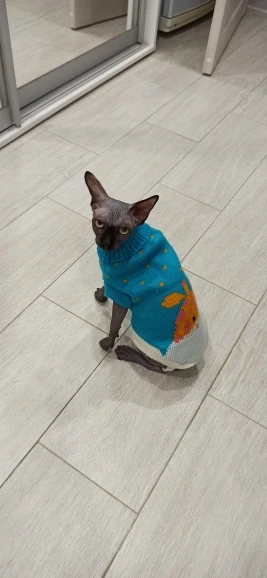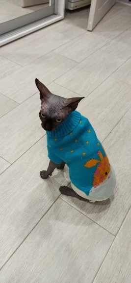 Свитер очень приятный и мягкий. В Тулу дошёл за 6 дней. Подошел идеально на чихуа весом 2.900, но можно и с весом больше ,по спинке 30см. Советую продавца! Спасибо Вам за вашу работу !!!