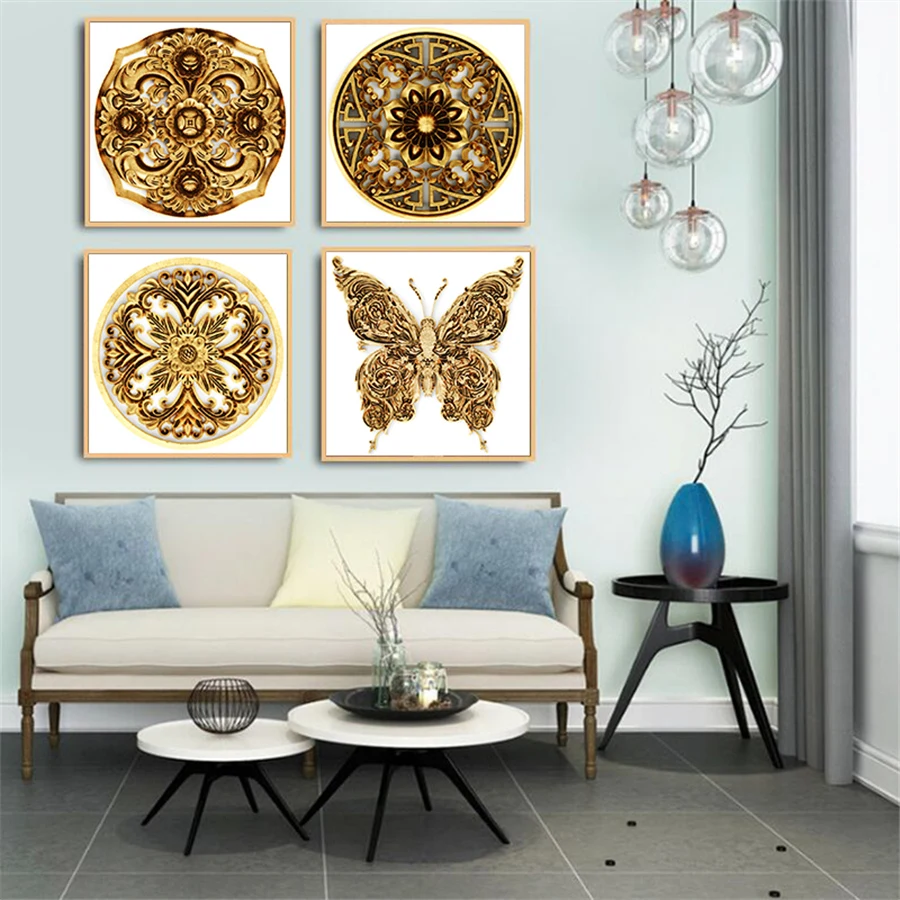 Золотая мандала, цветок, холст, картина, мечтатель, танцевальное искусство, постеры, Настенная картина для гостиной, Современное абстрактное украшение для дома