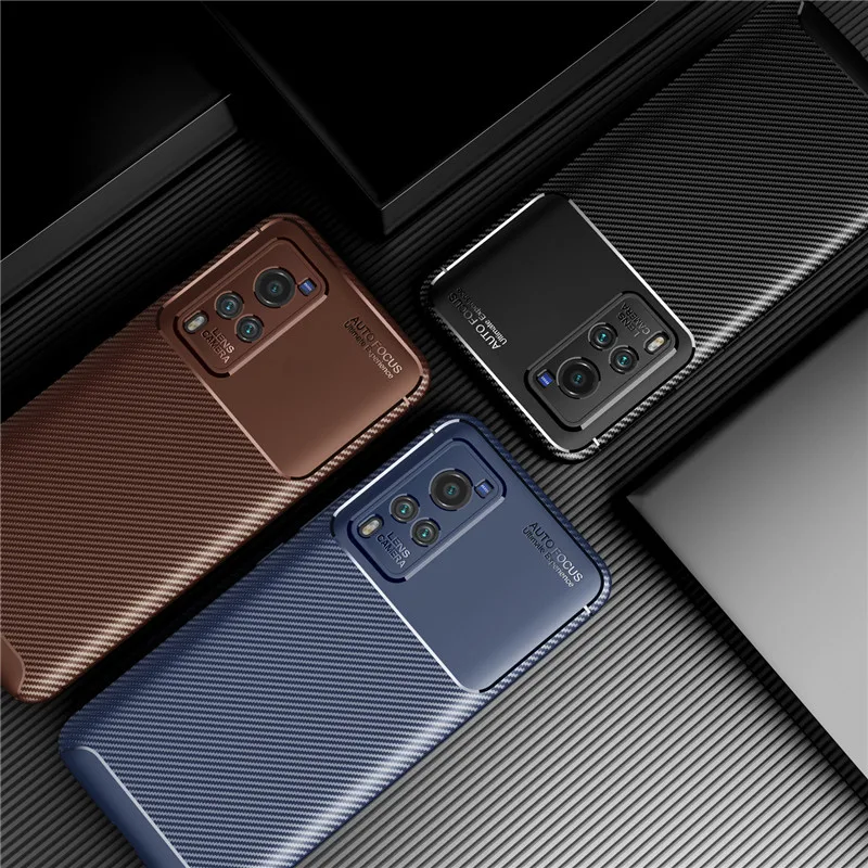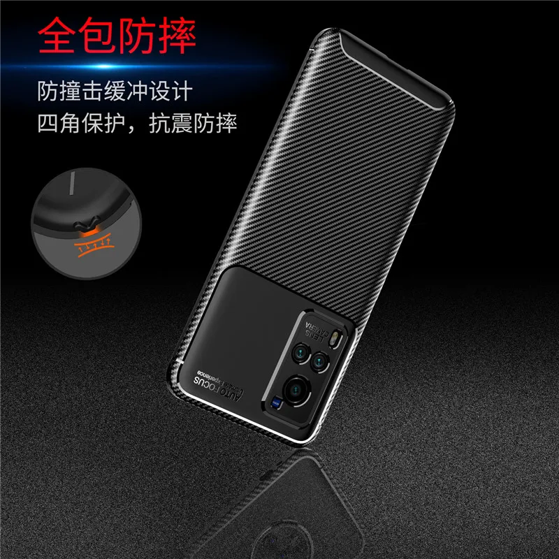 Чехол-бампер для Vivo X60 5G, силикон, ТПУ, углеродное волокно, про...