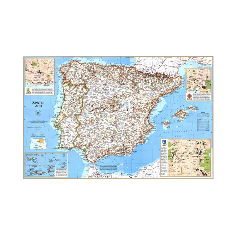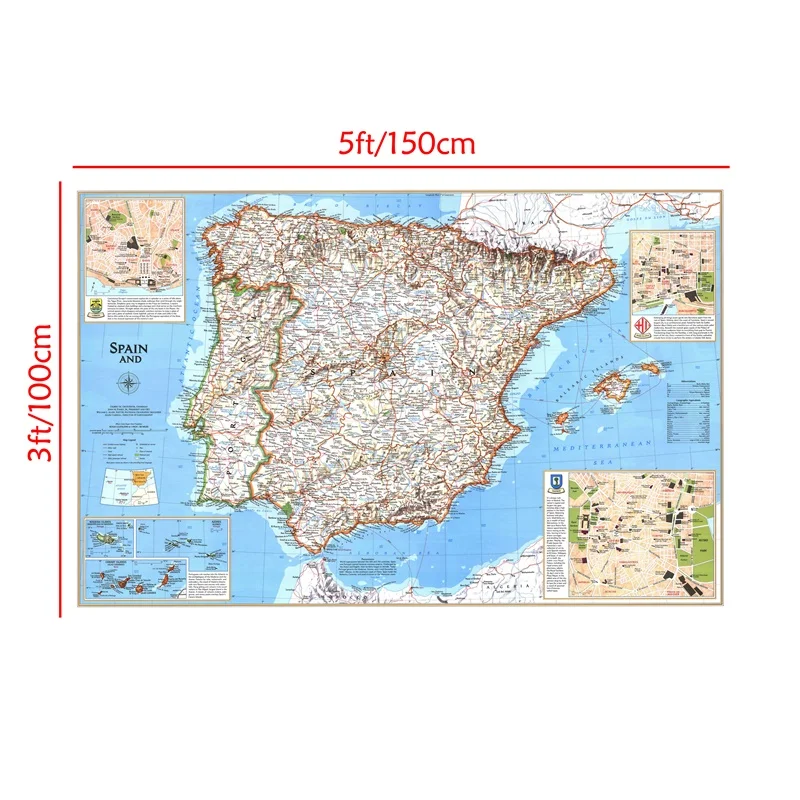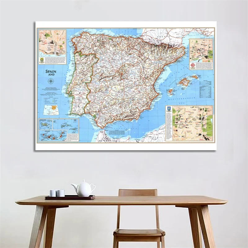 225*150 см 1984 Ретро Карта Испании и Португалии Нетканая Картина н...