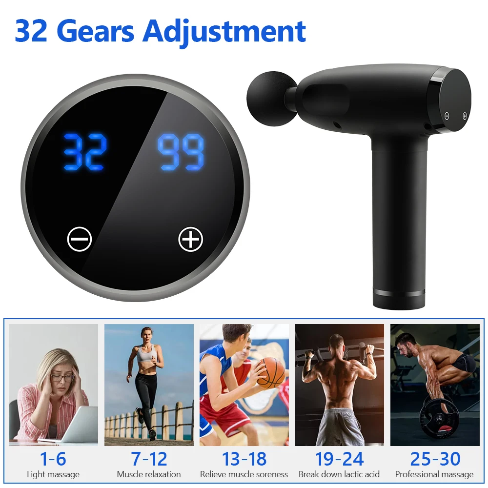 Массажный пистолет с ЖК-дисплеем, 32 передачи, Type-C