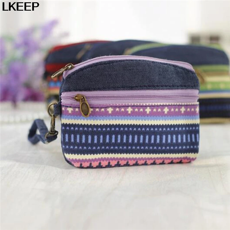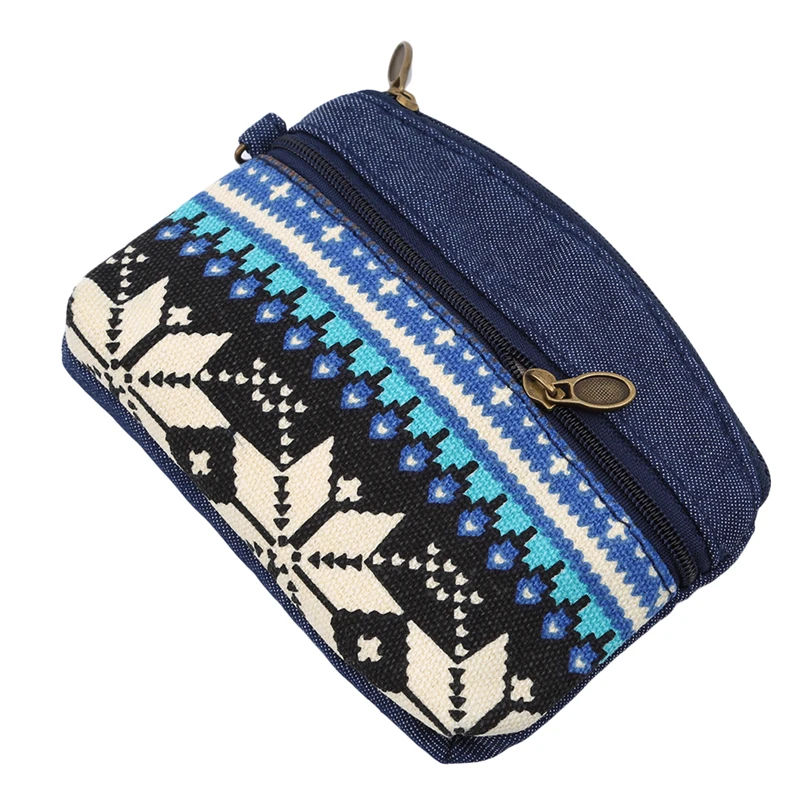 Этнический холщовый мини-кошелек, женские кошельки с двойной молнией, Детский кошелек для монет для девочек, кошельки для ключей
