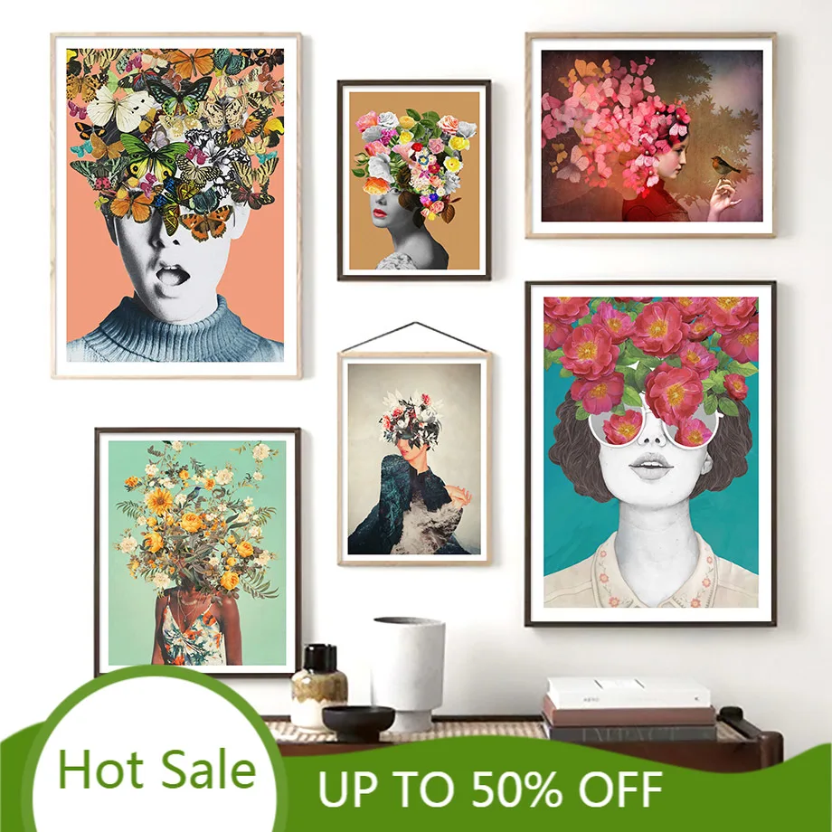 Женское Искусство с оранжевой шляпой абстрактная заколка, плакаты с...