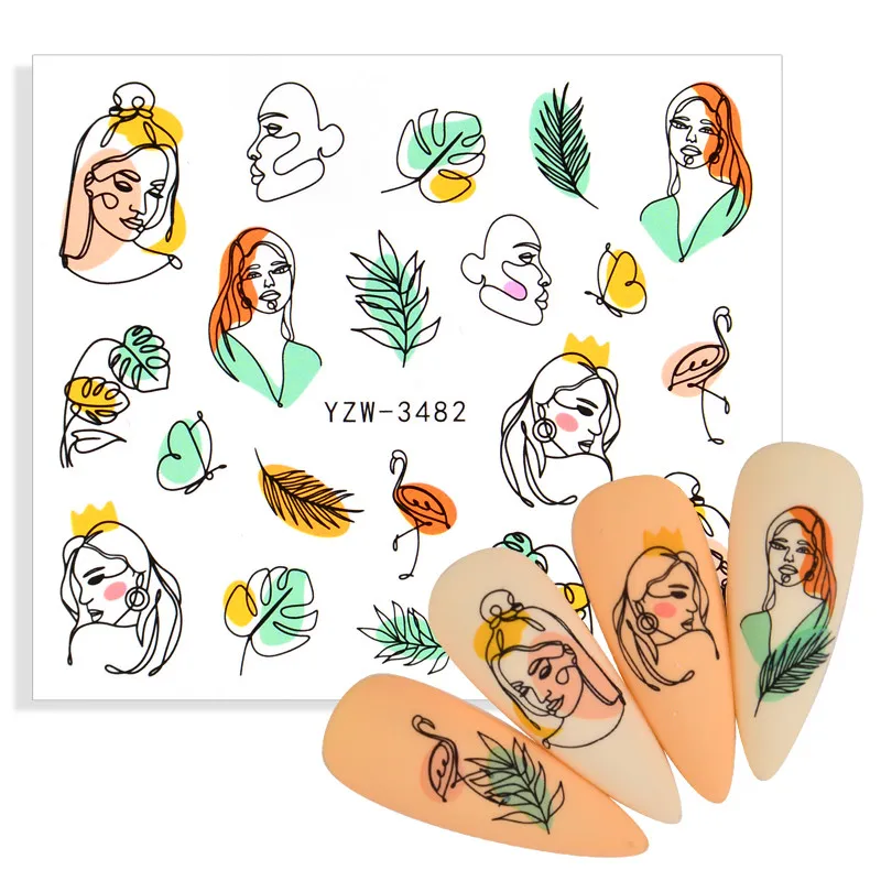 2022 модная женская наклейка для ногтей с акварельными знаками, абстрактные Слайдеры для девушек, бумажные наклейки для дизайна ногтей