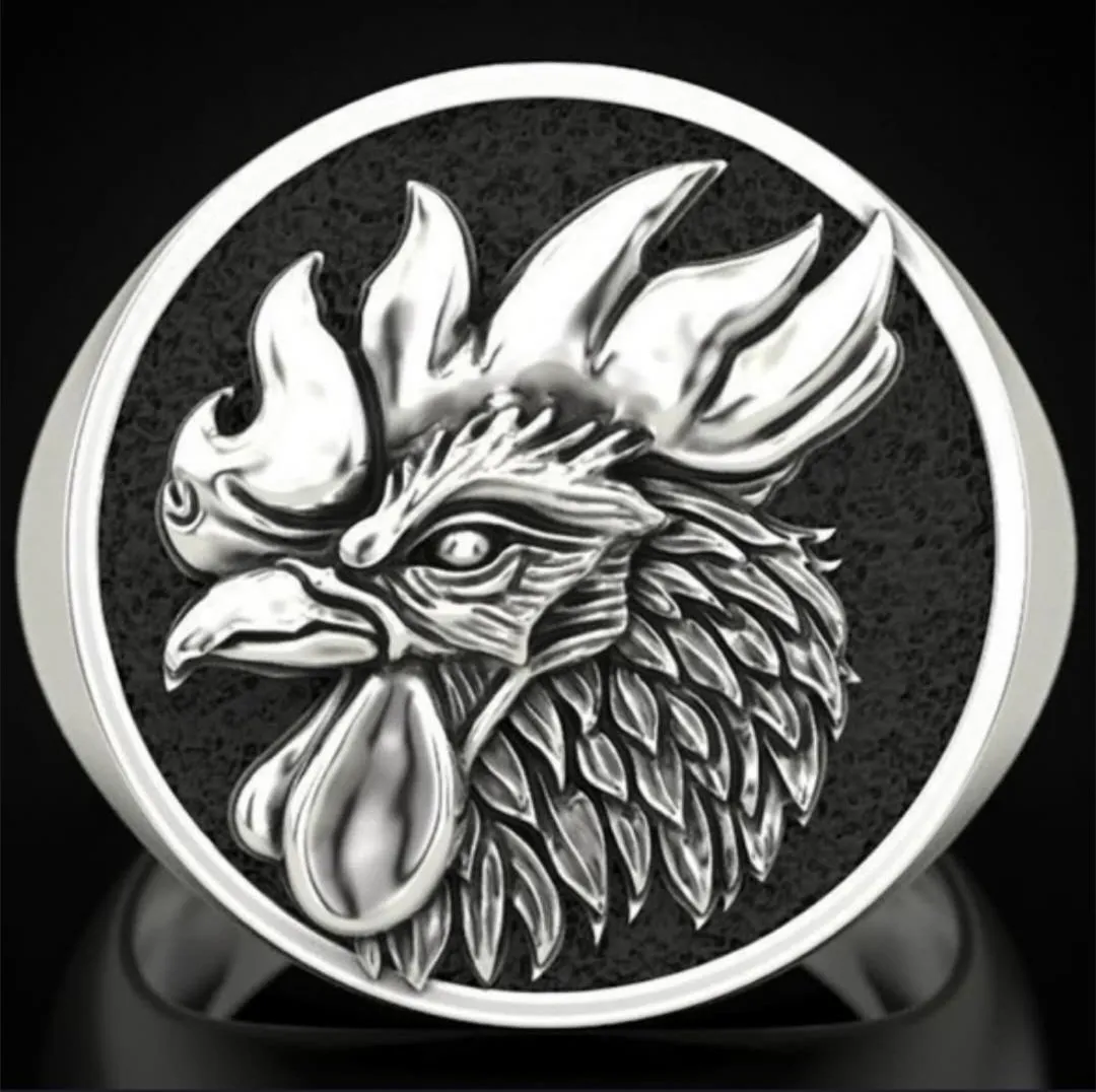 Мужское кольцо в виде головы петуха, Винтажное кольцо в стиле хип-хоп