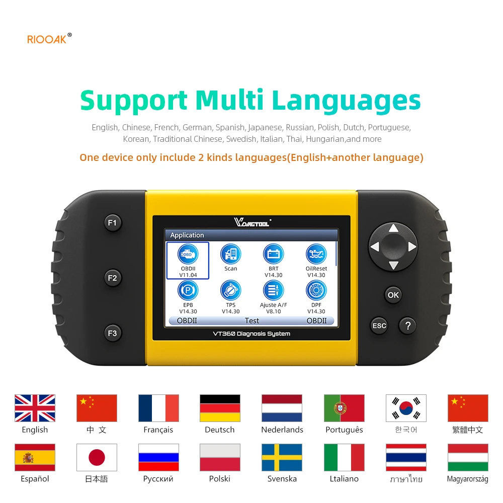 VT360 комбинированный VT300 + VT600. Он может поддерживать 19 видов специальных функций и полноценную диагностику систем. Поддержка автомобилей от 1996 до 2019 лет. 3 года обновления бесплатно и 3 года послепродажного обслуживания.