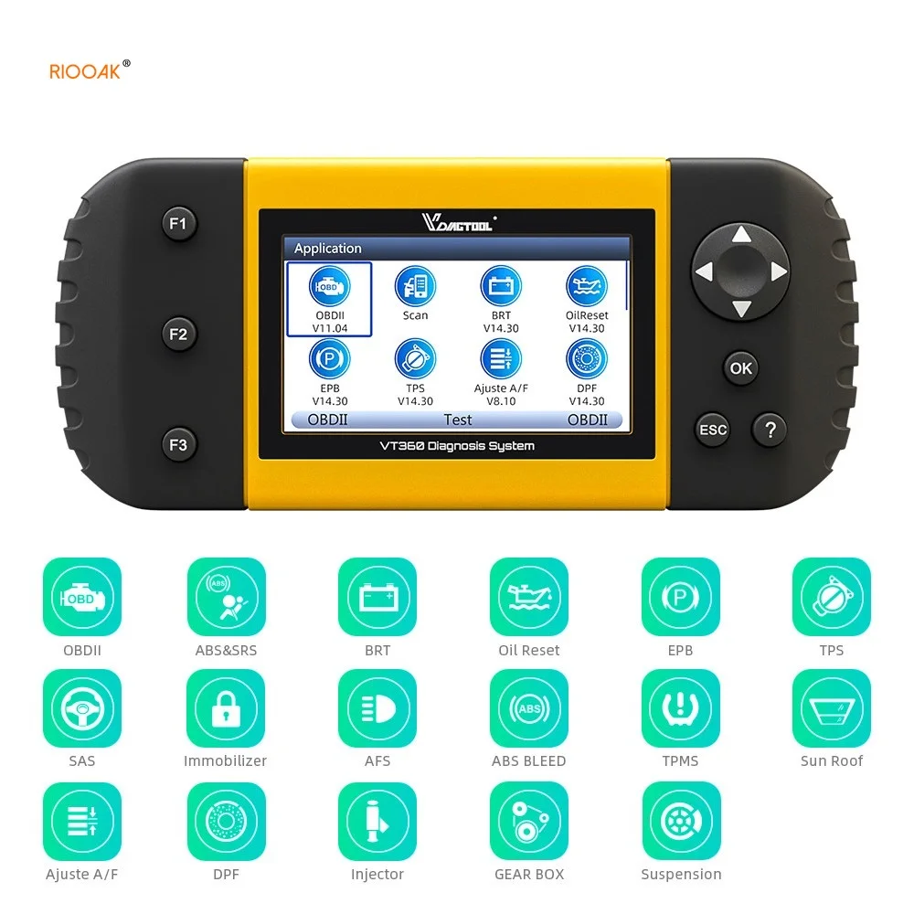 VT360 OBDII OBD2 полная система Автомобильный сканер ABS подушка безопасности SAS BRT EPB DPF TPA TPMS Immo инжектор сброса масла PK X431 easydiag