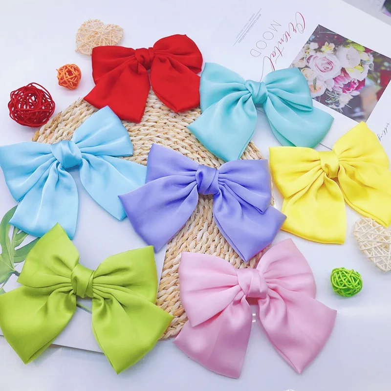 Последняя мода большой атласный бант заколка для волос для женщин и девушек, шифоновое заколка для волос с бантом с соской зажим для волос заколка для волос, украшение на голову; Аксессуары для волос