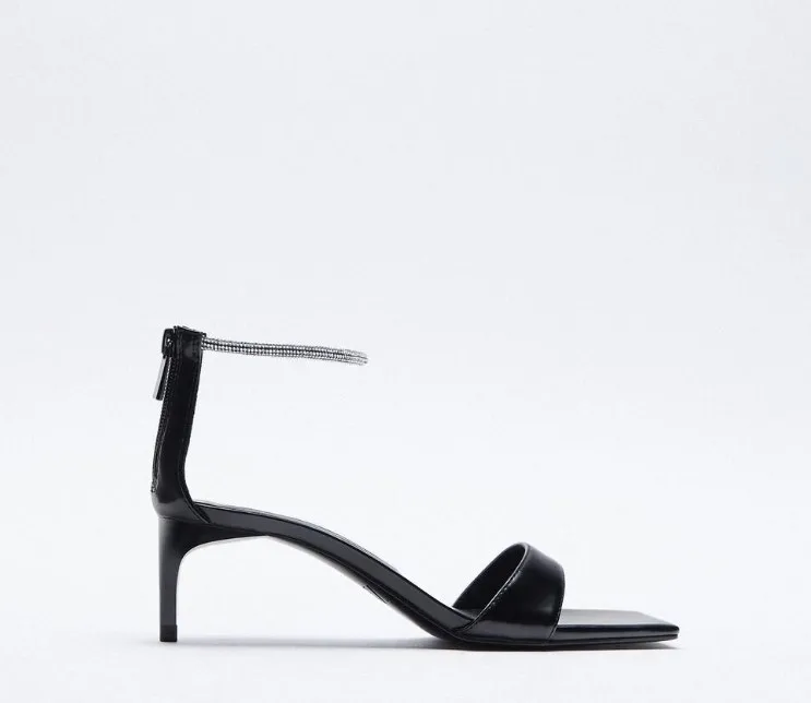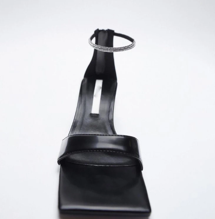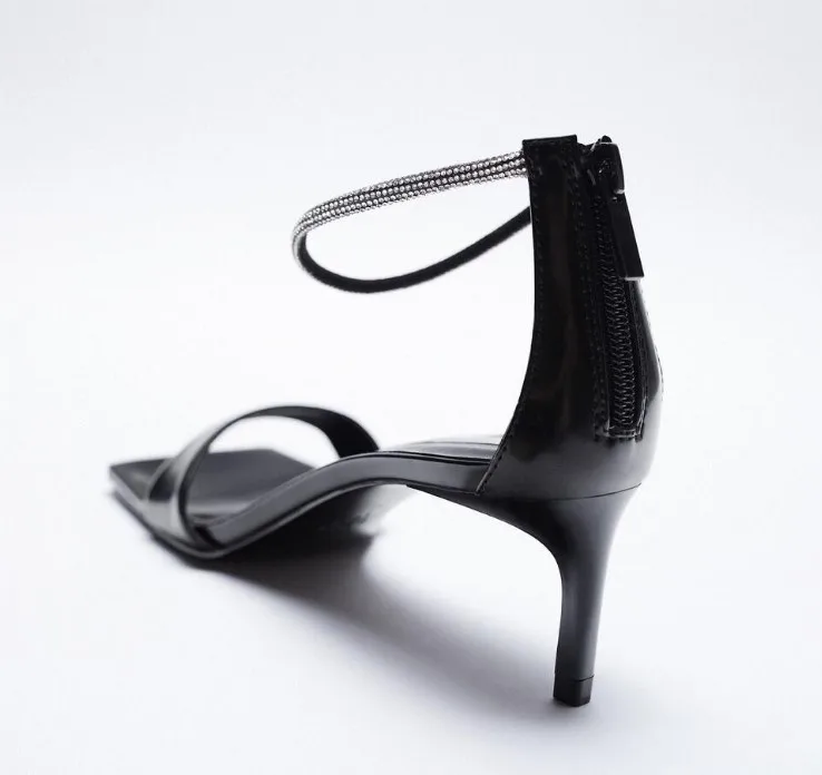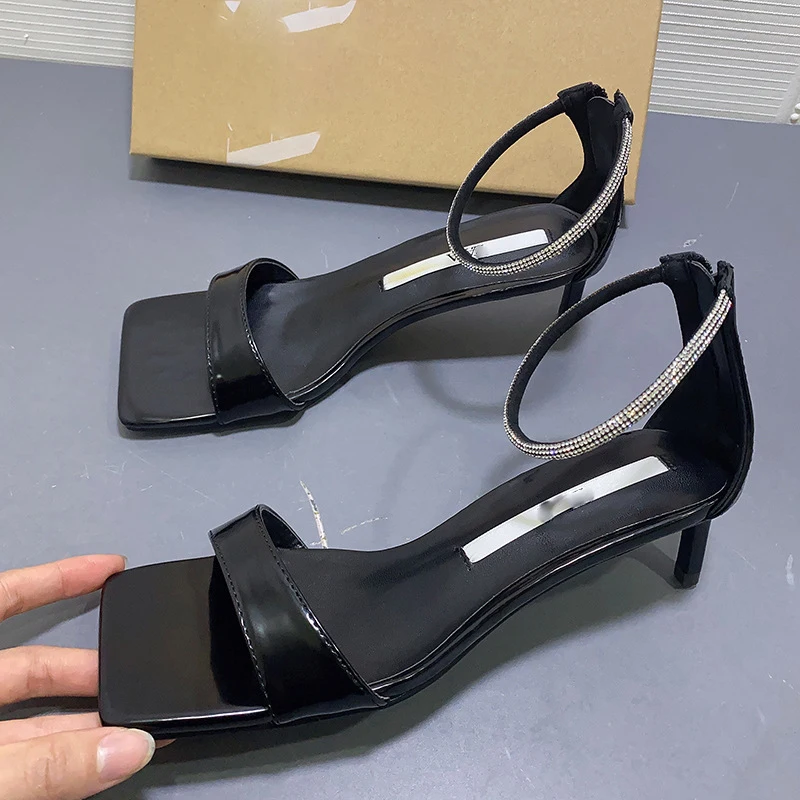Женские черные босоножки на высоком квадратном каблуке Со стразы; Новинка 2021 года; Туфли на шпильке с квадратным мысок открытый мысок; Размеры 35-42