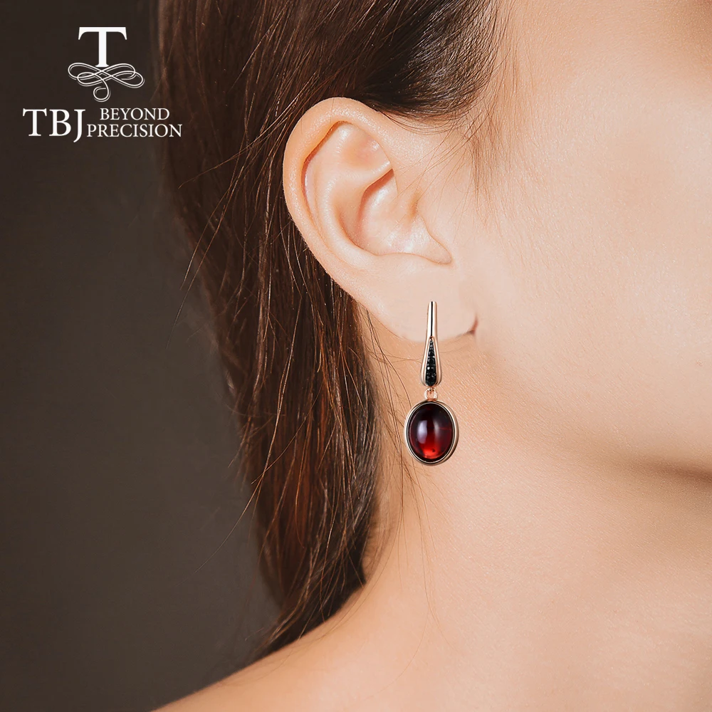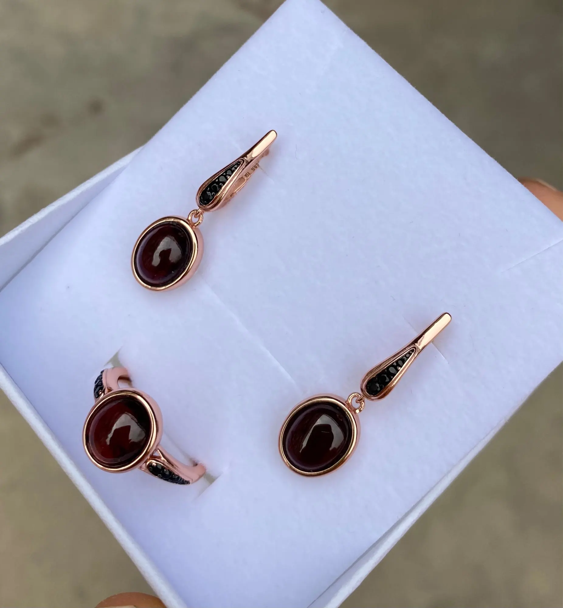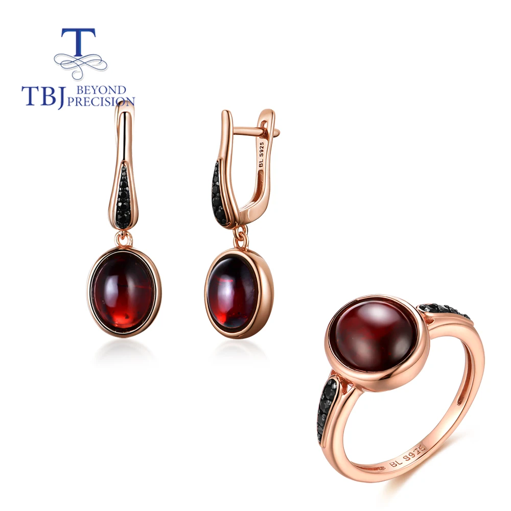 Комплект женских ювелирных украшений с черным гранатом 100% карата, 8 х10 мм, с драгоценным камнем овальной формы, из серебра 925 пробы