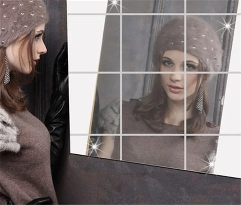 Новинка 2021, Квадратные Зеркальные наклейки на стену из стекла, 15 см * 15 см * 0,2 мм, самоклеящиеся длинные зеркала сделай сам, украшение для дома и гостиной