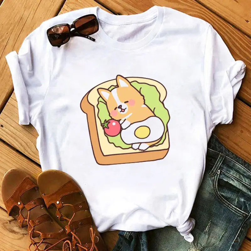 Женские футболки с рисунками из мультфильмов милые корги Harajuku футболка с изображением якоря: Милая футболка с короткими рукавами 90s в Корейском стиле Стиль Футболка Модный Топ для женщин