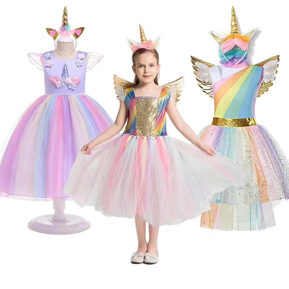 Единорог платье принцессы платье для маленьких девочек, детские Вечерние платья на день рождения вечерние костюмы Радужный многослойный костюм дети, единорог, фиолетовый; Детские наряды для От 3 до 8 лет