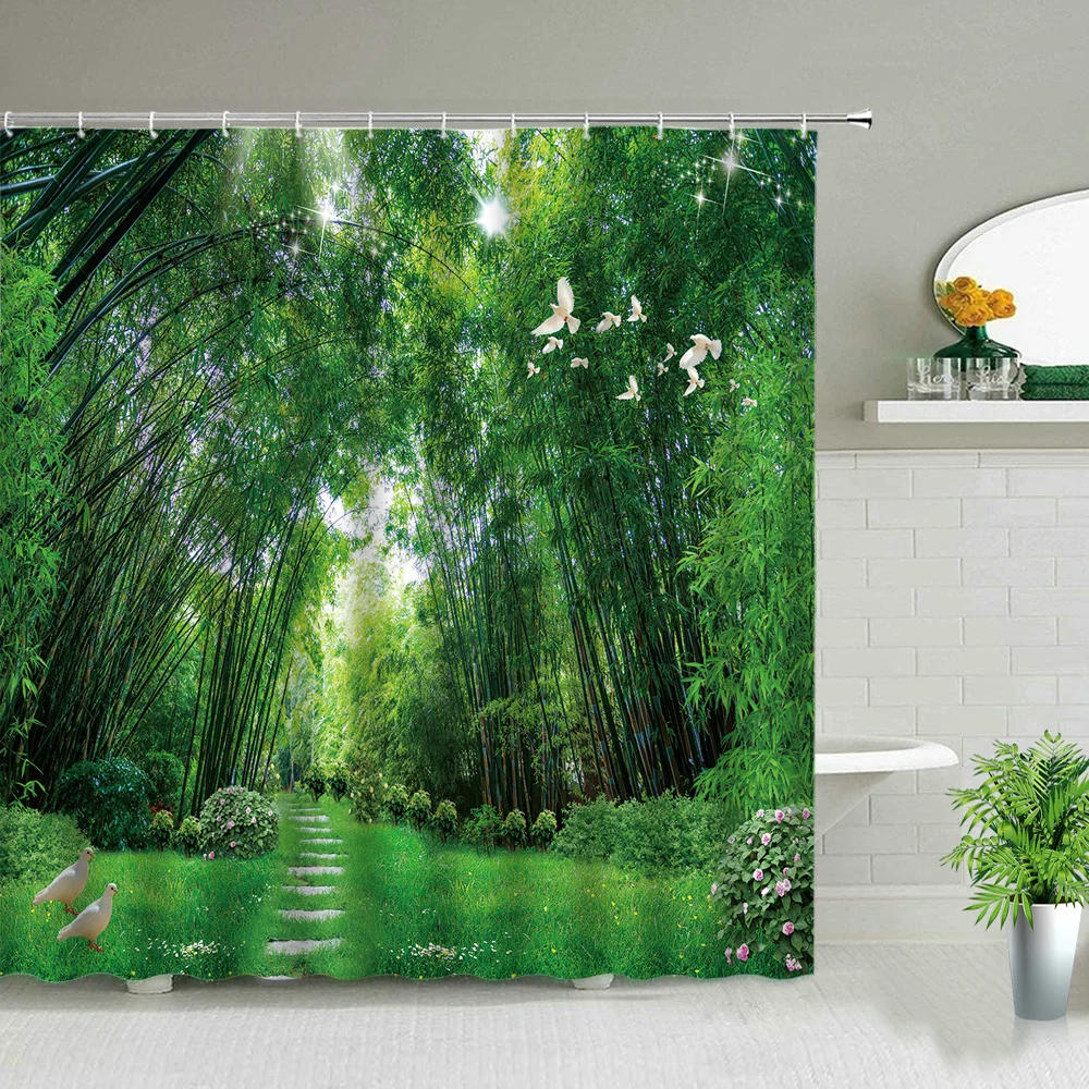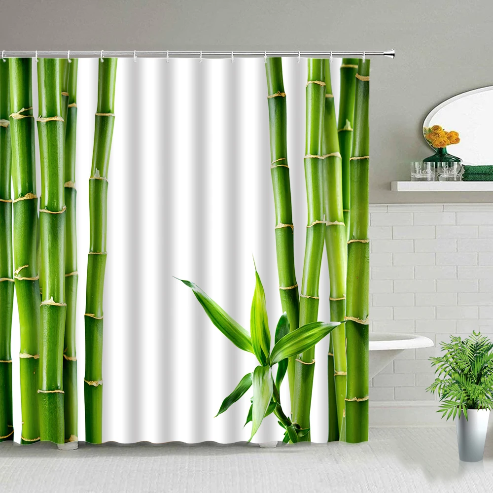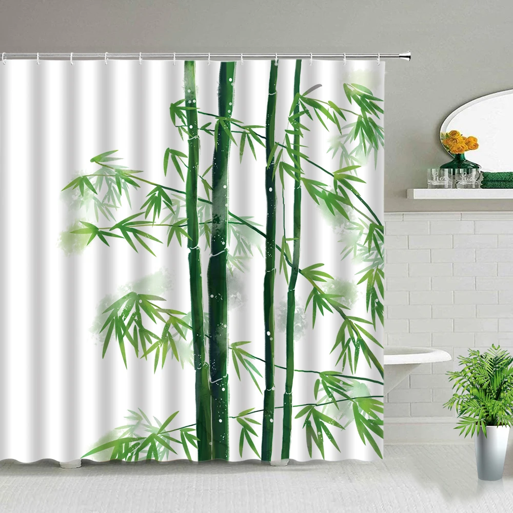 Занавеска для душа в китайском стиле, комплект из Зеленой Бамбуковой серии, водонепроницаемые декоративные шторы для ванной комнаты с крючком, популярные аксессуары для ванны