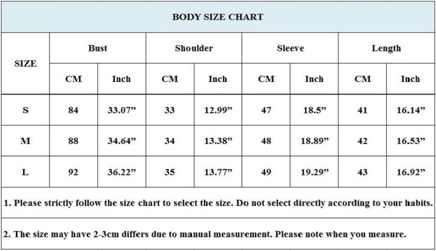 1. Пожалуйста, строго следуйте таблице размеров, чтобы выбрать размер. Не выбирайте товар в соответствии с вашими привычками. 2. Размер может отличаться на 2-3 см из-за измерений вручную. Обратите внимание при измерении.