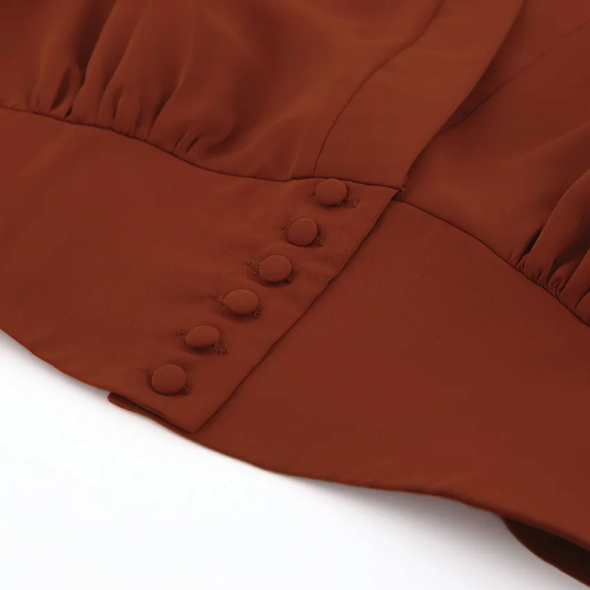 Женская весенне-осенняя Элегантная блузка с длинным рукавом-фонариком, женский топ с V-образным вырезом и пуговицами, винтажная блузка, женские рубашки, блузы