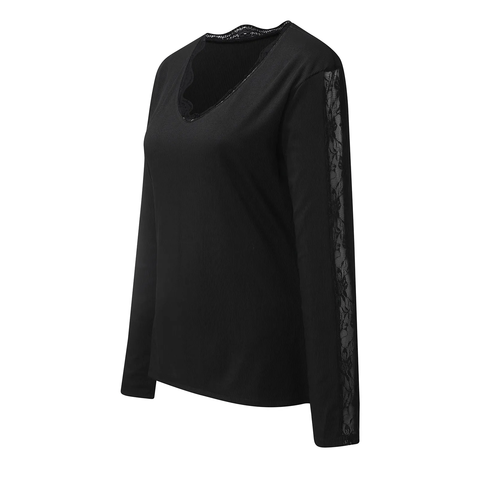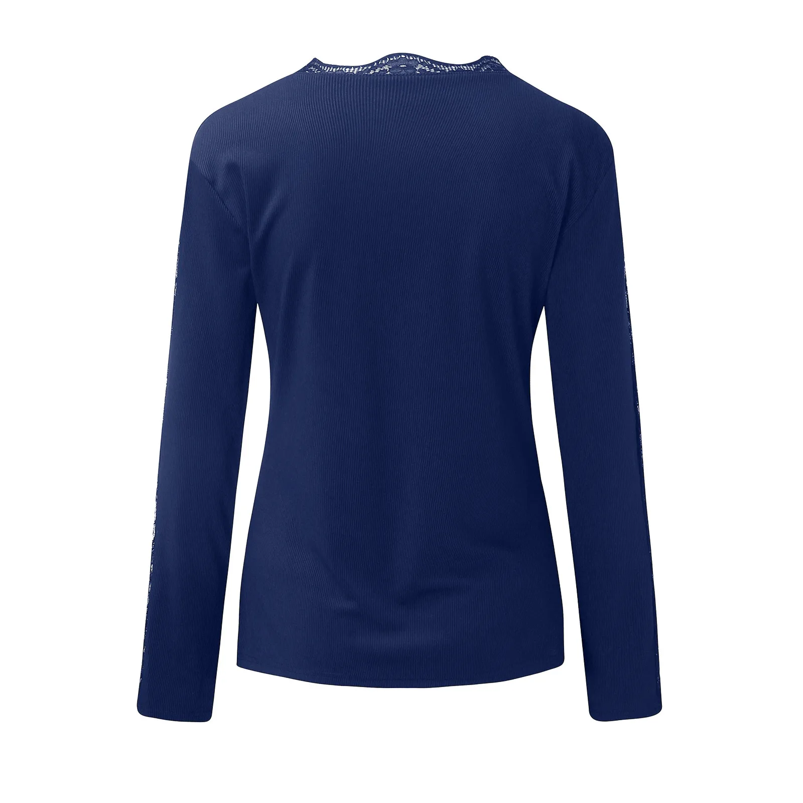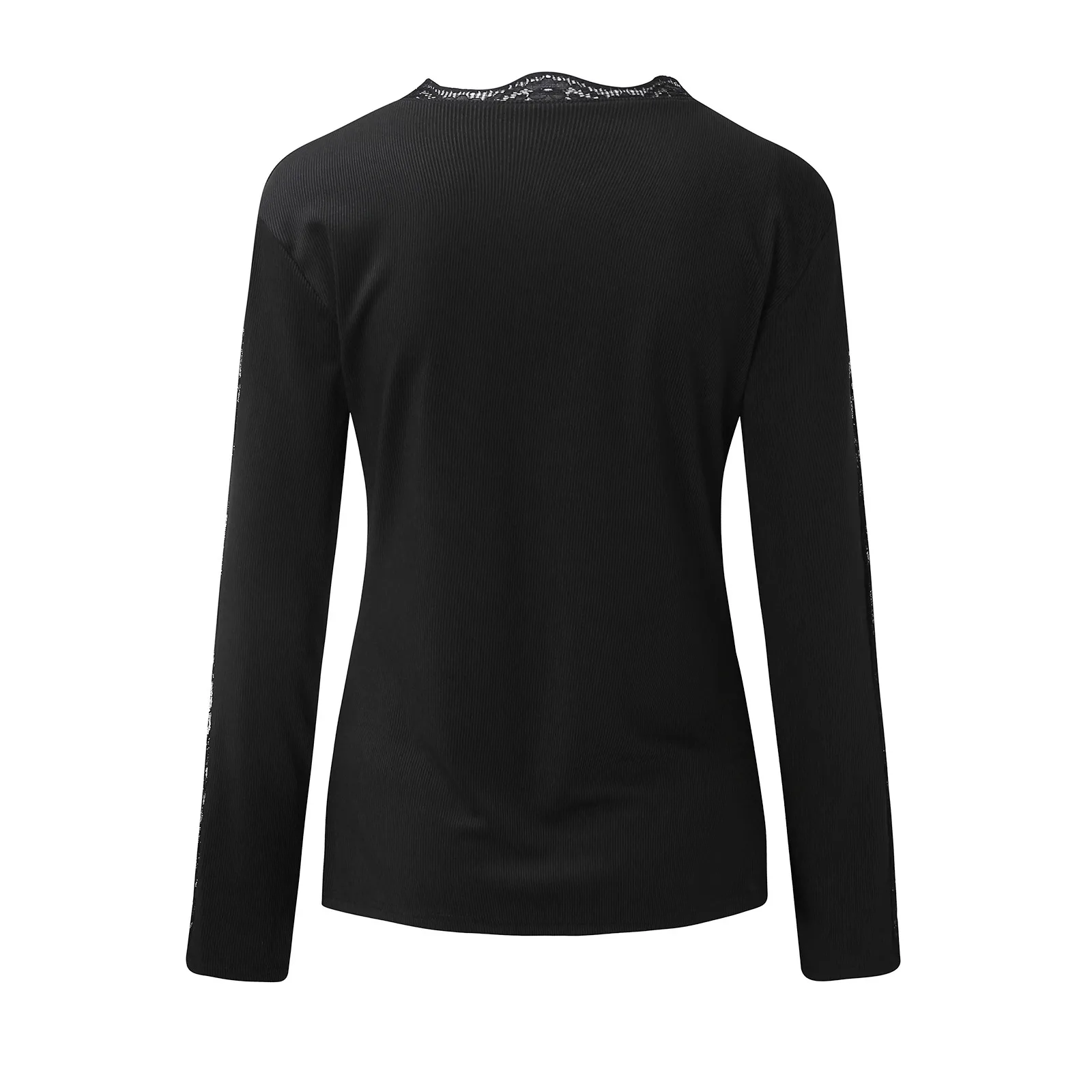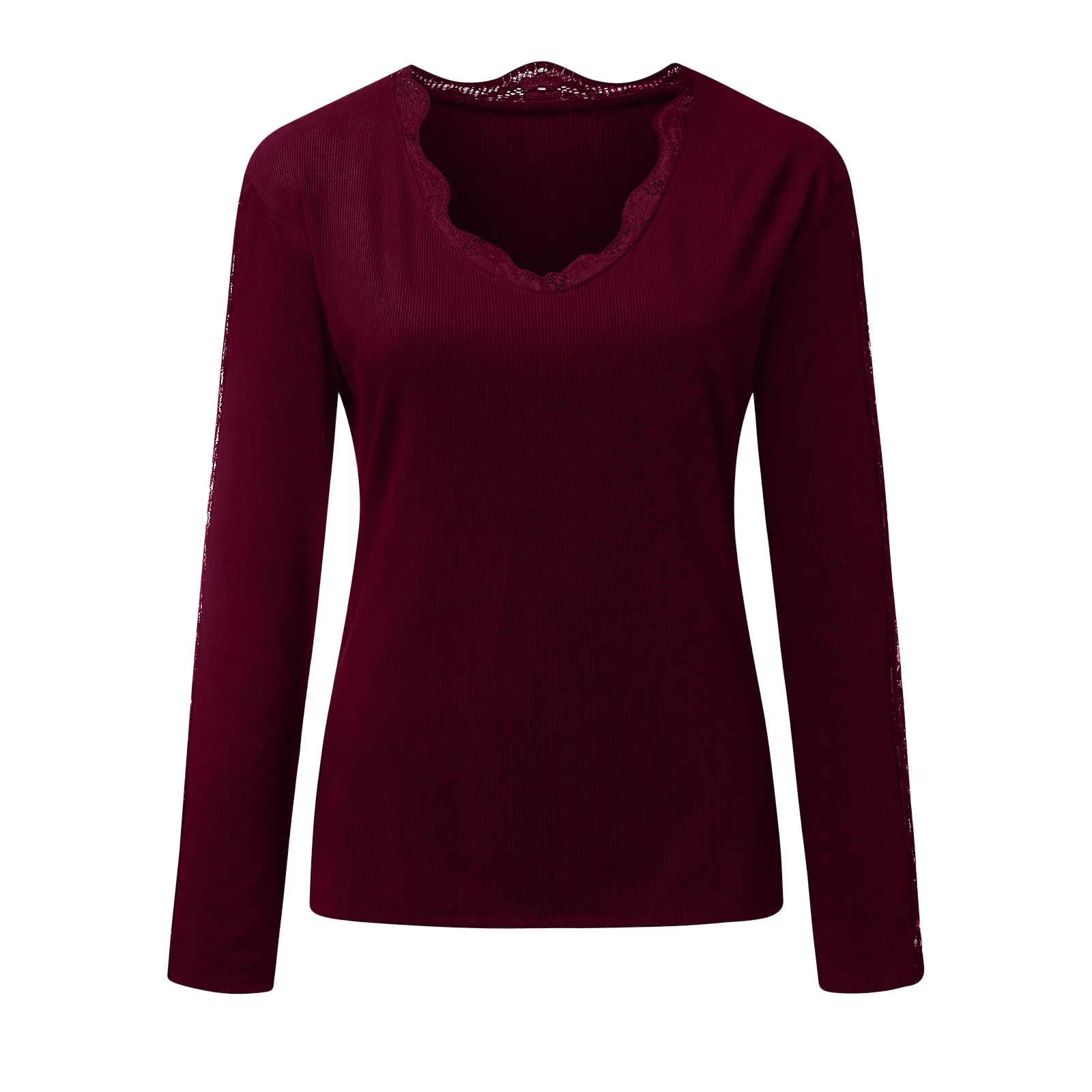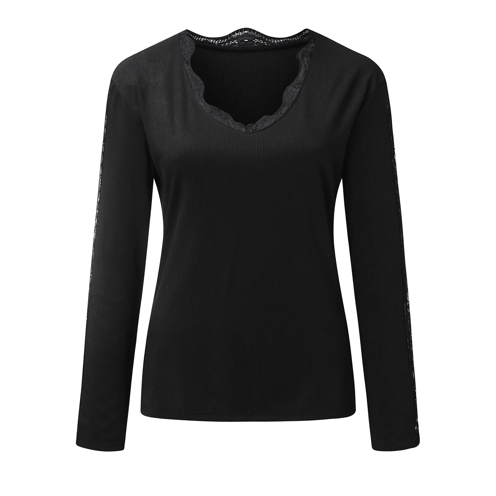 Сексуальное платье с v-образным воротом, кружевная блузка Для женщин с открытыми плечами с длинным Стиль поездок пуловер с v-образным вырезом и кружевом блузки Рубашка Женская @ 40