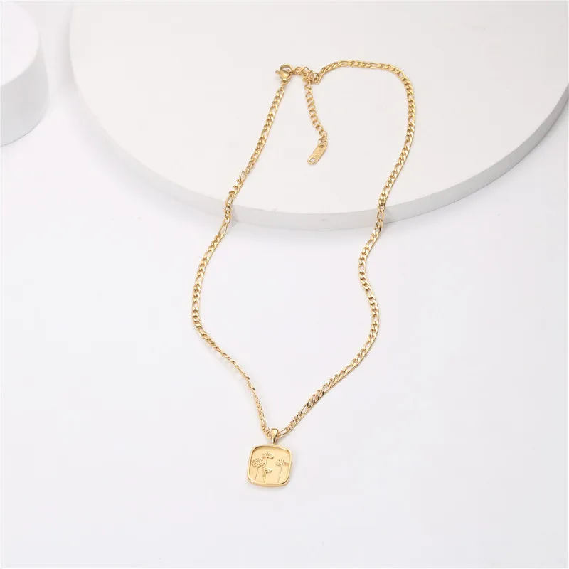 Женская винтажная цепочка Фигаро, ожерелье из нержавеющей стали с тиснением, стереоскопическим изображением цветов, квадратной формы, 2021