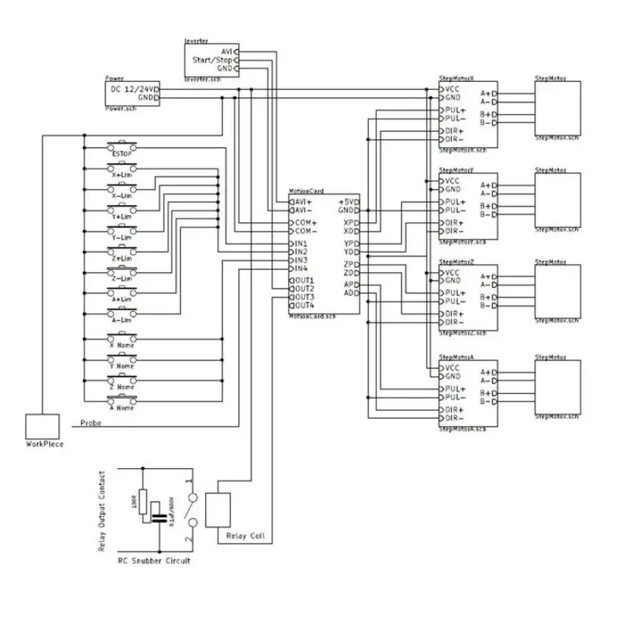 4 оси: Поддержка 4-осевого соединения, вы можете подключить четыре привод шагового двигателя или сервопривода.