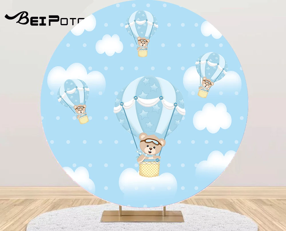 Голубой Мишка Тедди День Рождения Вечеринка фон мальчик круг фотография Фон горячий воздушный шар скатерти на стол YY730