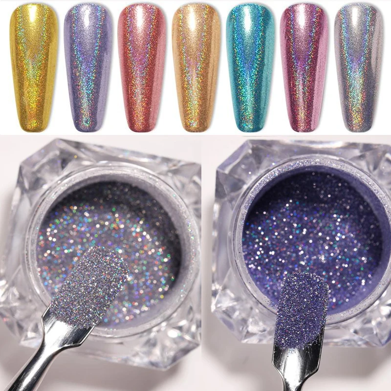 1 коробка Радужный порошок для ногтей Радужный Серебряный Блестящий...