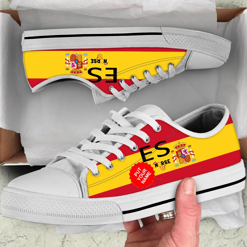 Женские кроссовки FORUDESIGNS на заказ, с испанским государственным флагом и именем медсестры, Классические Низкие стильные парусиновые туфли для женщин