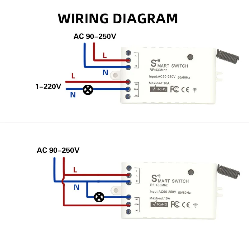 Универсальный пульт дистанционного управления 433 МГц переменный ток 110 В 220 В 10 А 1 канал радиочастотный беспроводной релейный приемник и брелок для светильник вентиляции