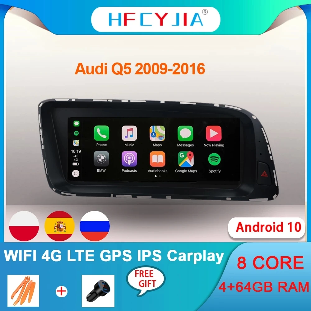Автомобильный радиоприемник Carplay, 8,8 дюйма, Android 10, для Audi Q5 2009-2016, 8 ядер, 4 + 64 ГБ, Wi-Fi, 4G, BT, Wi-Fi, IPS-экран, GPS-навигатор, записывающее устройство