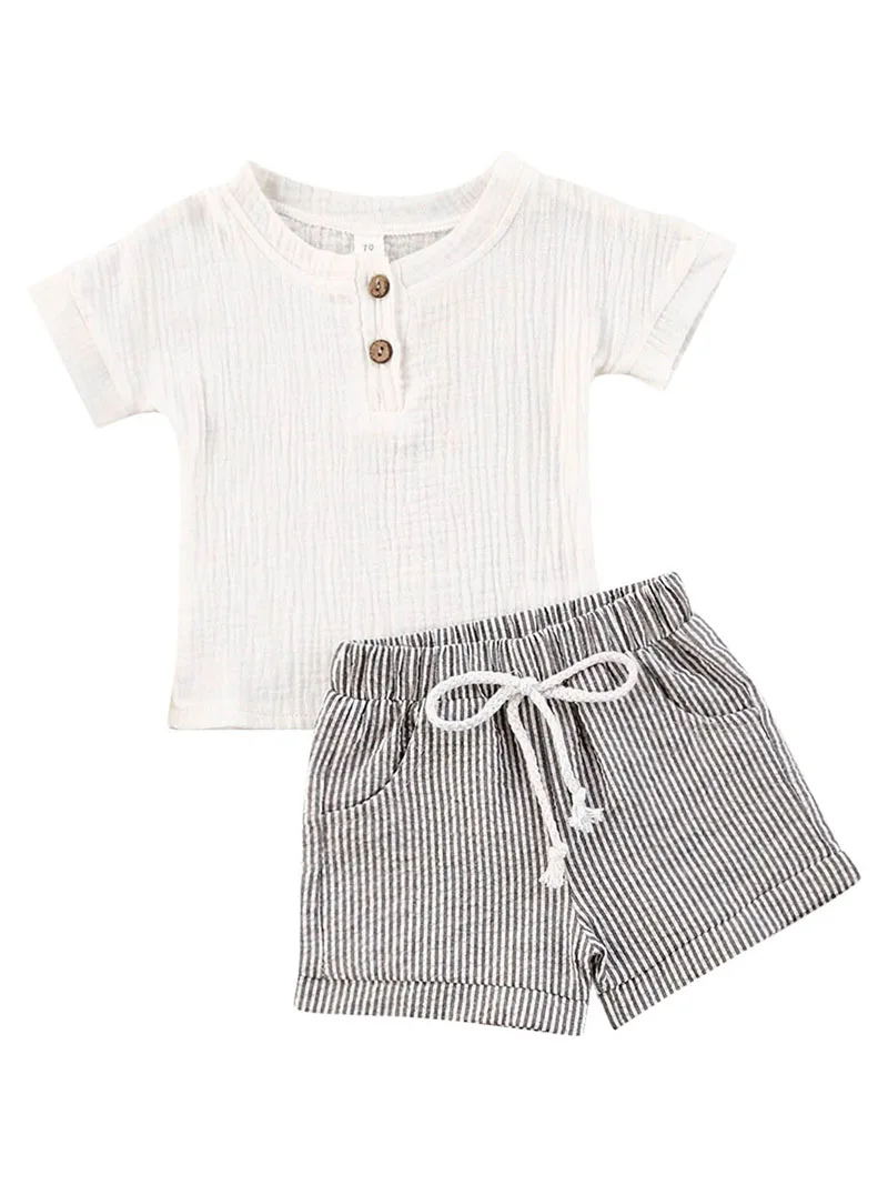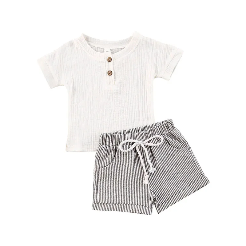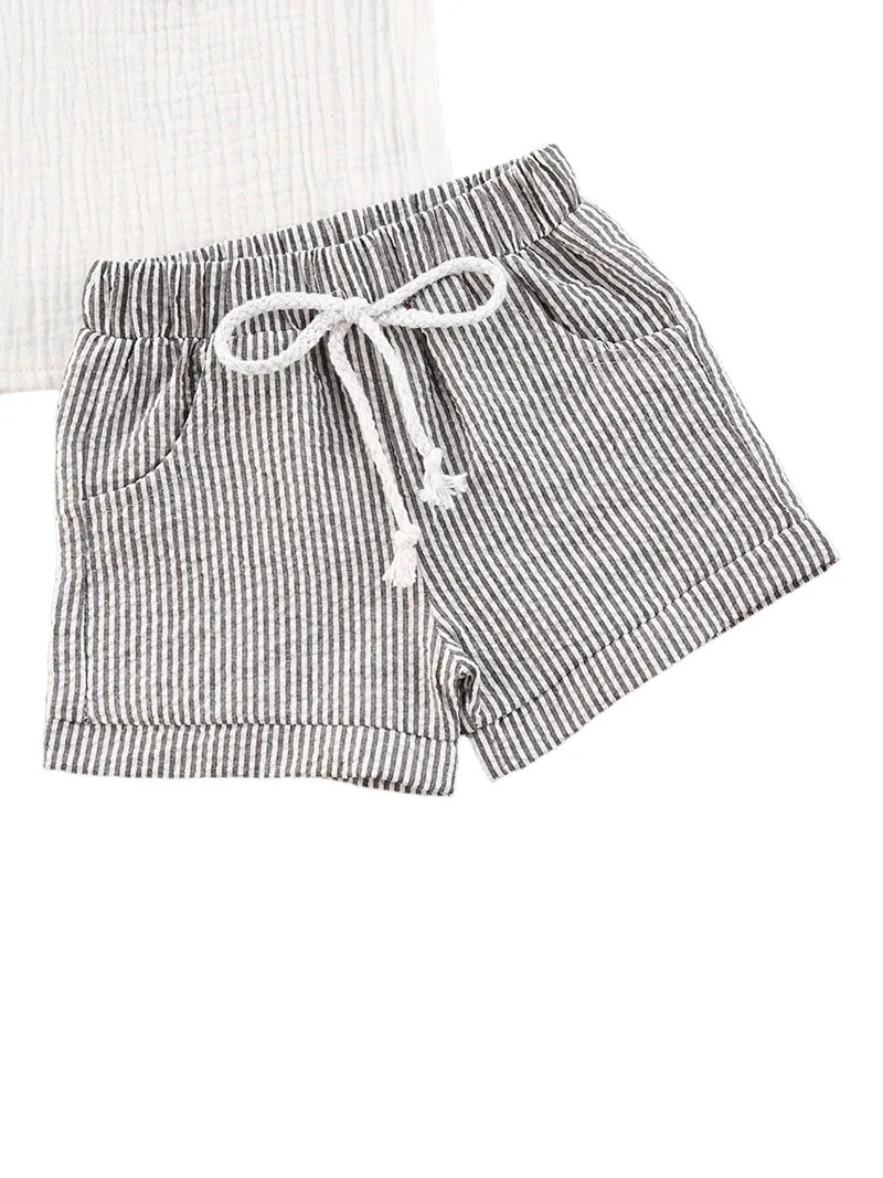 Комплект одежды lioraitiin для маленьких девочек от 0 до 3 лет, белый хлопковый топ с короткими рукавами, рубашка, шорты в полоску с принтом, комплект из 2 предметов