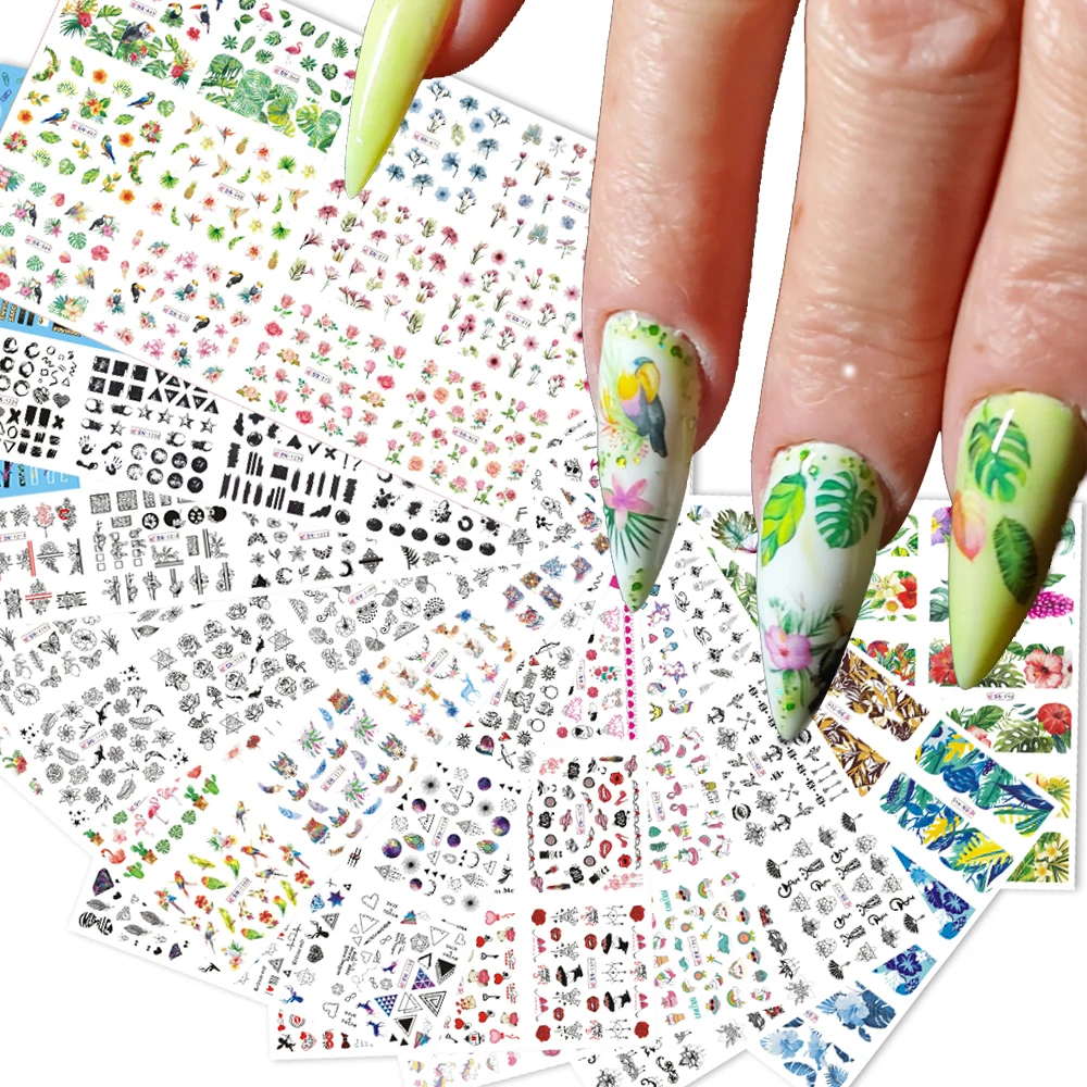12 видов конструкций Смешанные Цветочные геометрические наклейки для ногтей набор переводных наклеек для ногтей слайдеры Цветочные листья украшение для маникюра