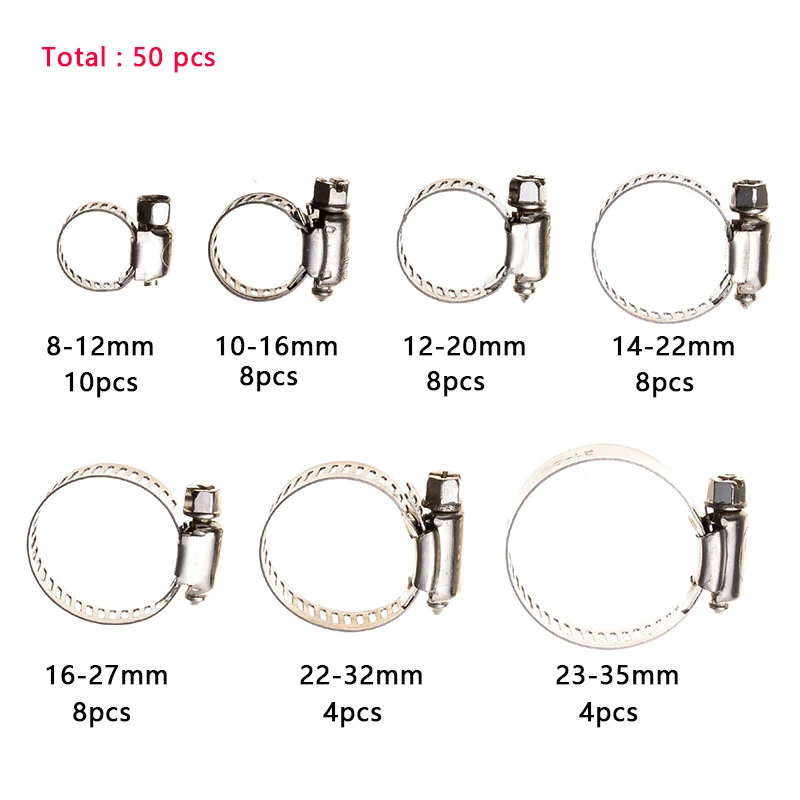 5060 шт 8 мм-38 мм трубы хомуты Нержавеющаясталь обруч зажим Автомобильная топливная труба зажим пружина оборудования воды Водостоки