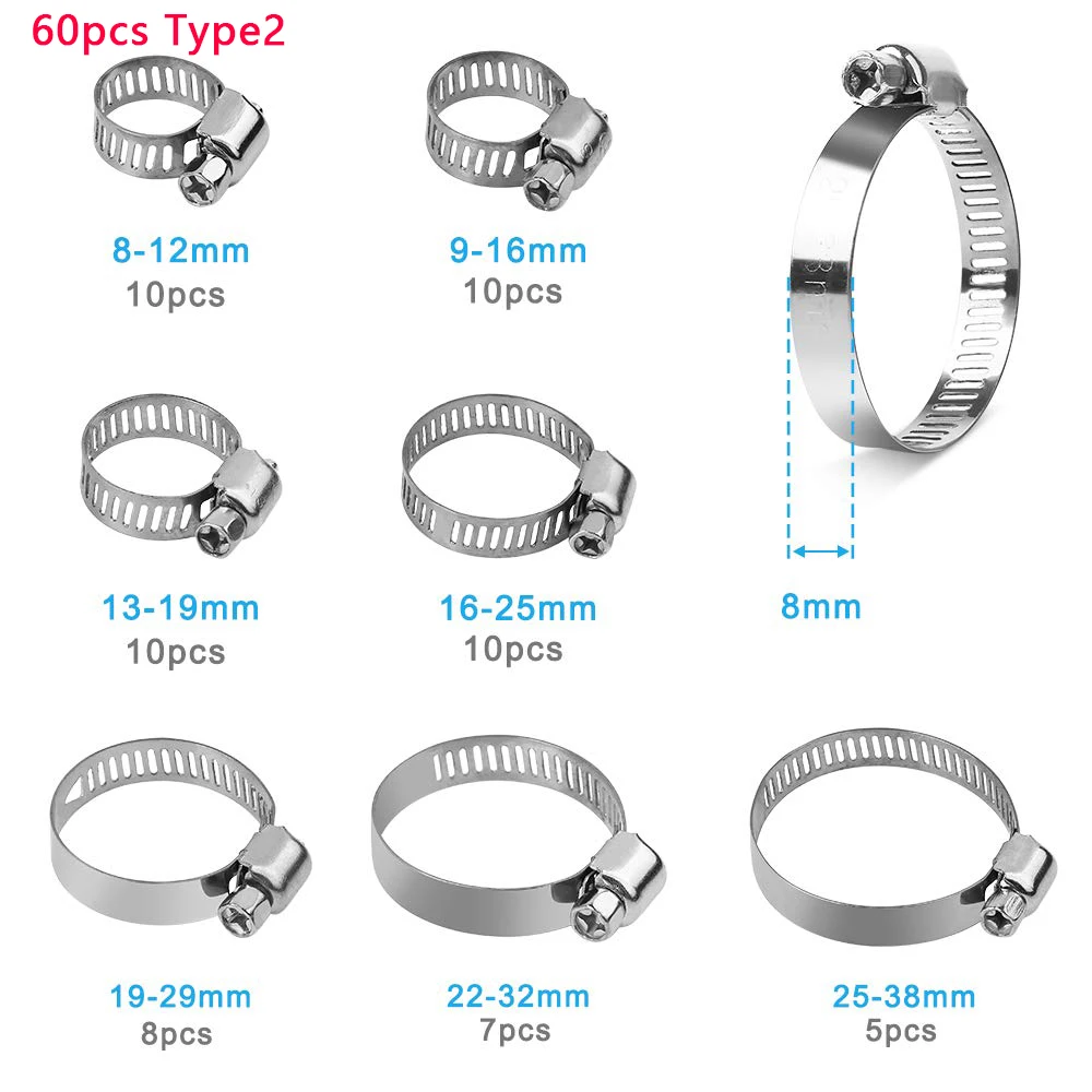Зажимы для шлангов, 5060 шт., 8-38 мм, хомуты из нержавеющей стали,...