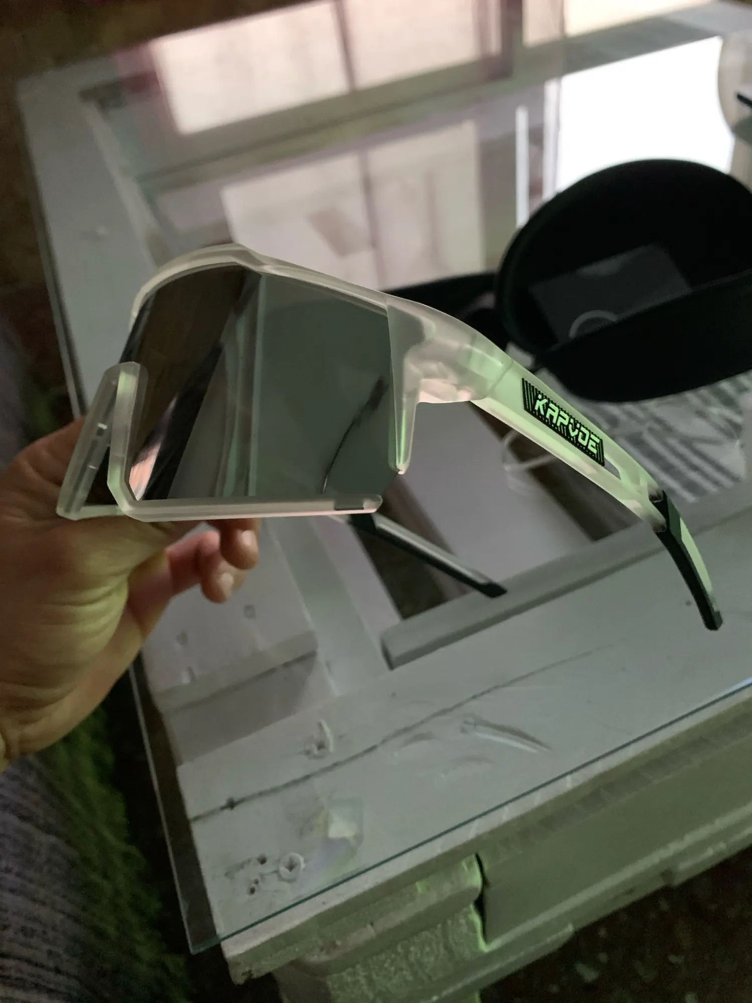 Очки пришли в Германию в течении двух недель. Сделаны очень качественно. Пластик лёгкий и приятный. Сидят удобно. Стёкла меняються легко. Никаких посторонних запахов. Единственное замечание : Один болт крепления дужки к очкам, утоплен немного больше чем второй . В целом очки классные ! Во время яркого солнца, глазам очень комфортно. Продавцу спасибо и хорошего бизнеса !