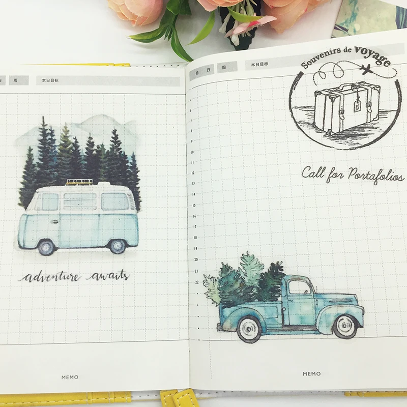 Наклейки декоративные для скрапбукинга, нарисованные наклейки растений, деревьев, автомобиля, автобуса, 24 шт.