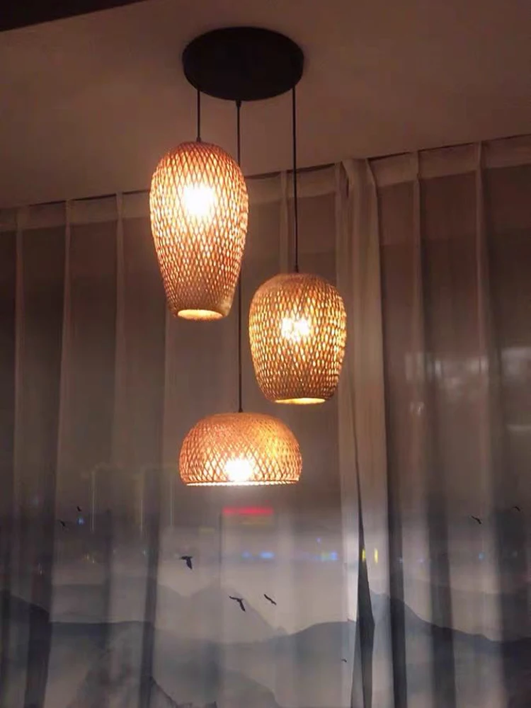 Китайские подвесные светильники ручной вязки из бамбука, тканевые подвесные светильники для сада, ресторана, домашнего декора, осветительные приборы