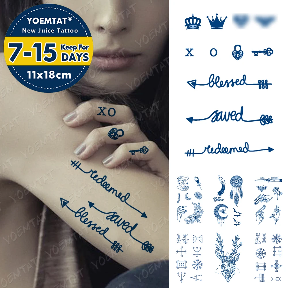 Сок прочного Водонепроницаемый временная татуировка Стикеры Корона буква, стрелка пистолет Нож цветок флеш-тату женские чернила для боди-арта с имитацией татуировки наклейки переводные тату татуировки временные стикеры