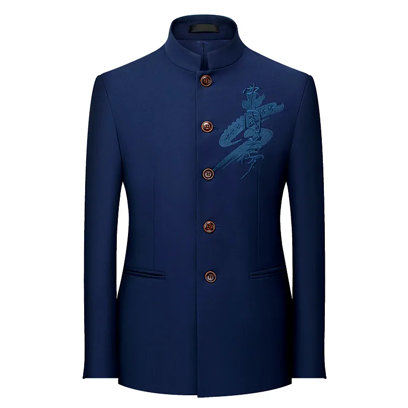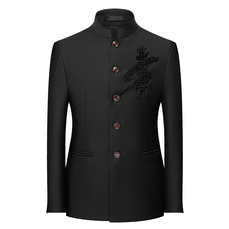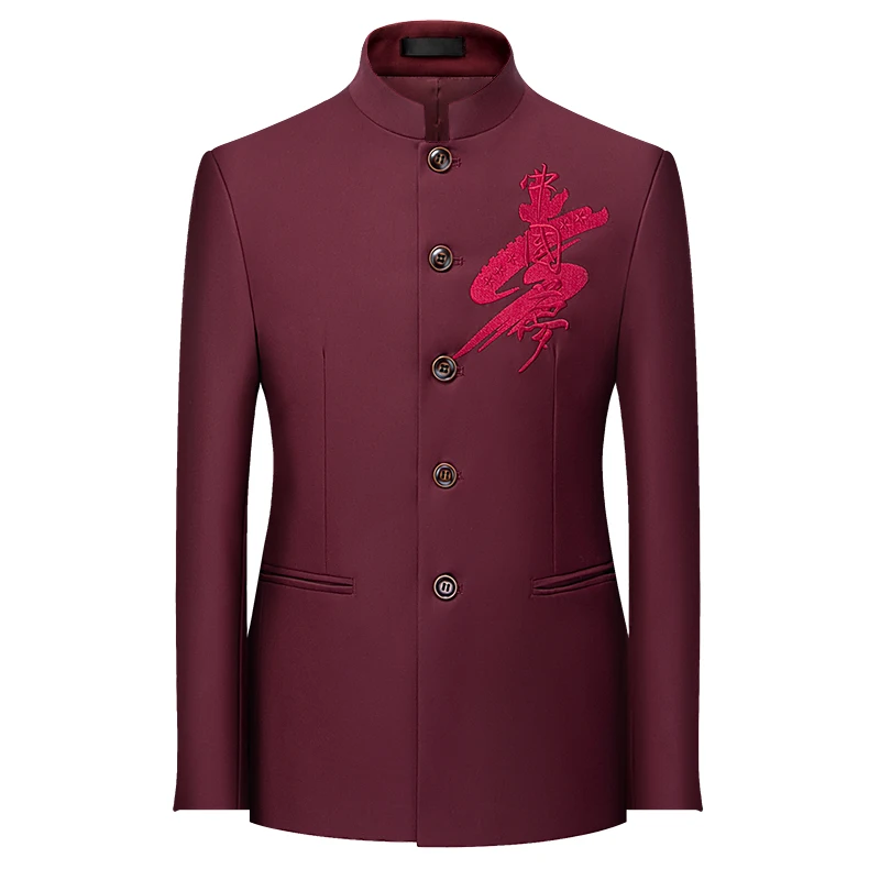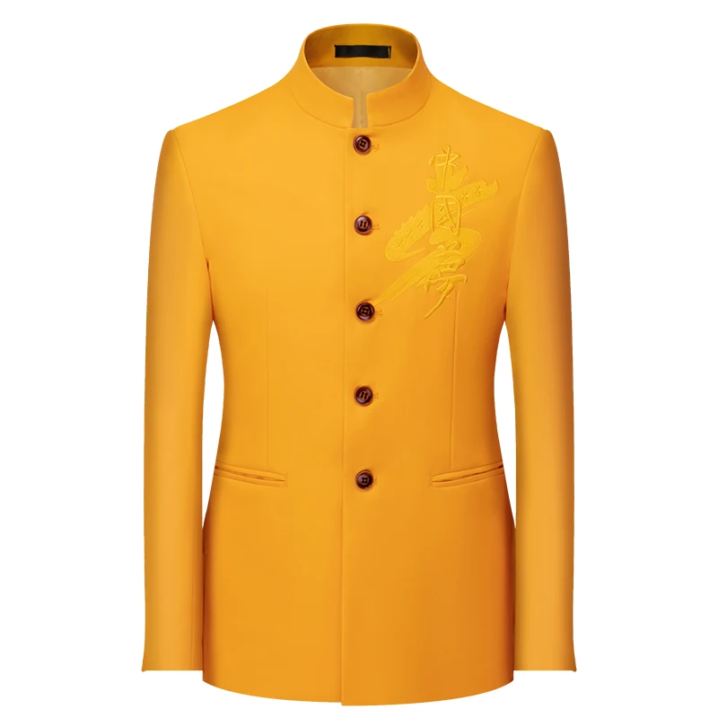 Китайский с воротником-стойкой Мужской Блейзер, однотонный Повседне...