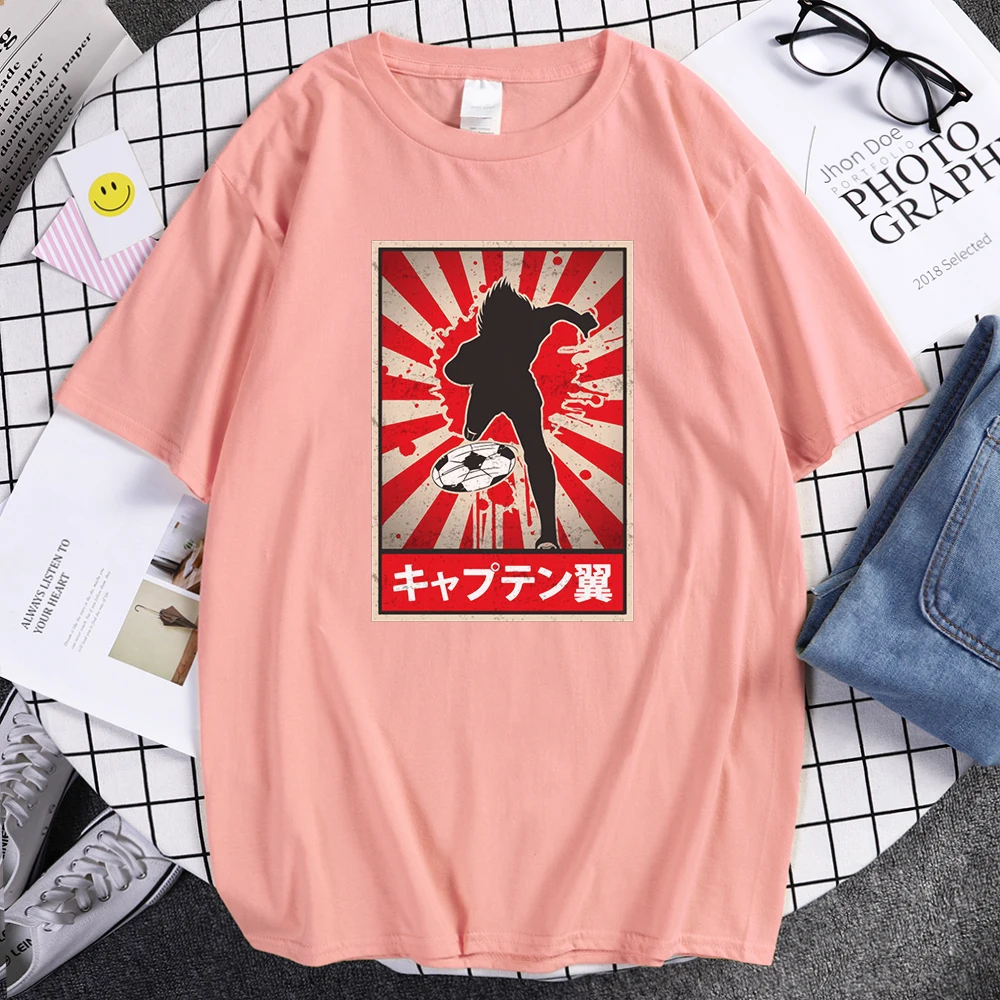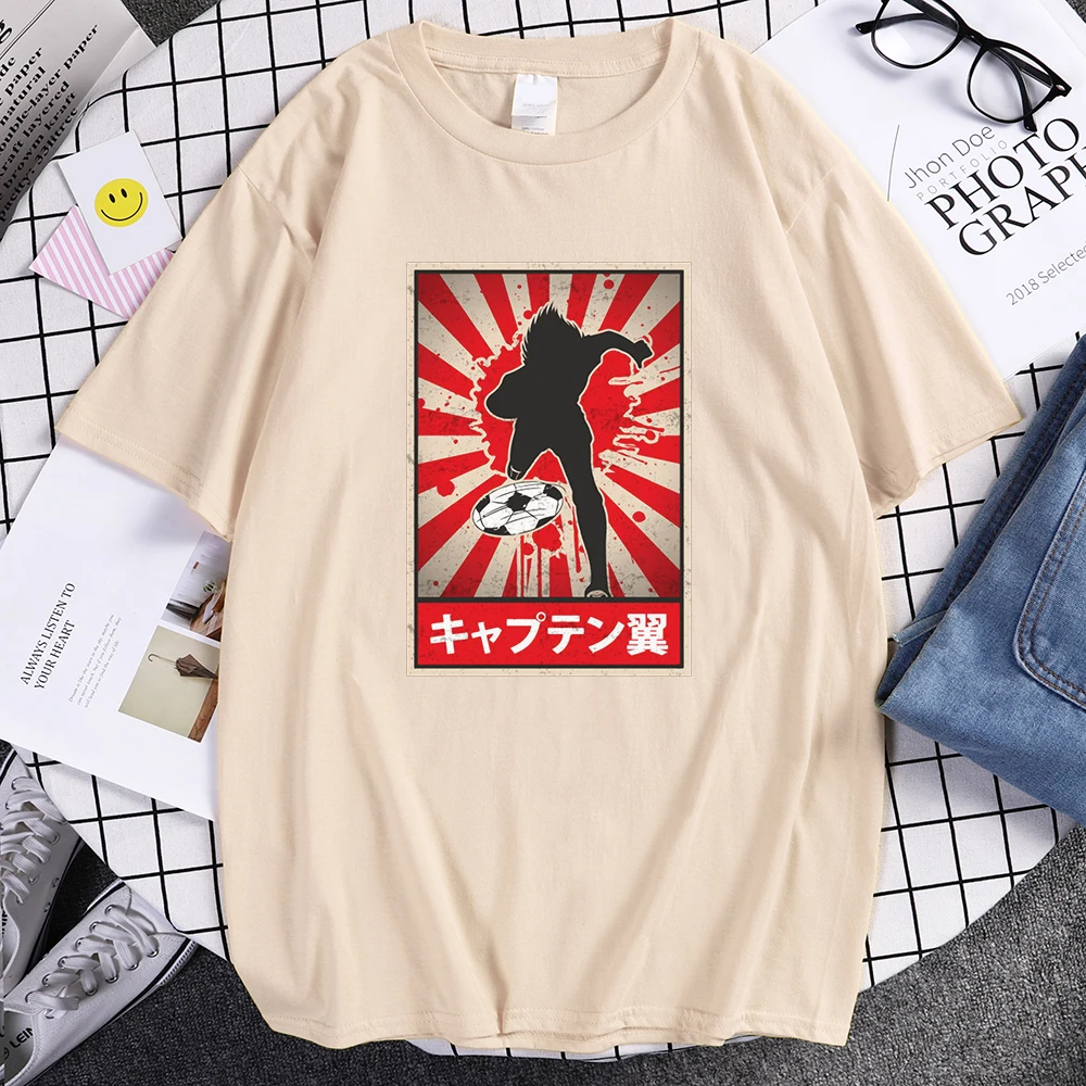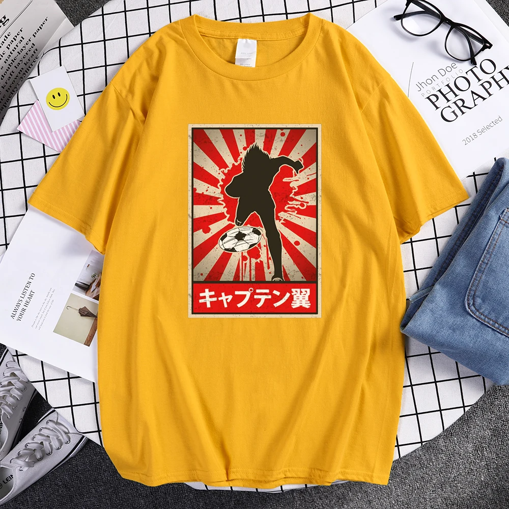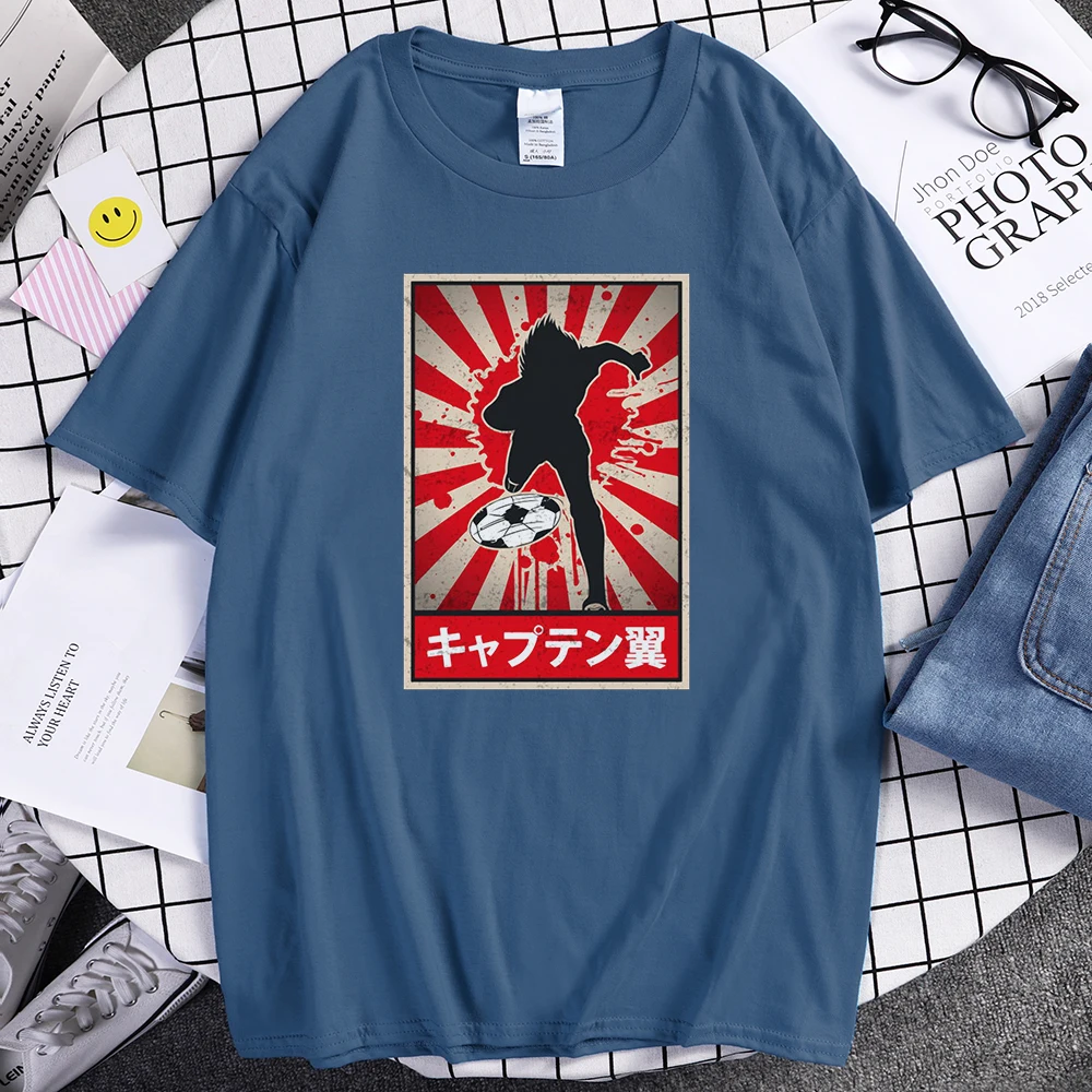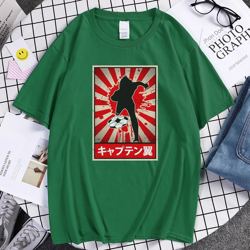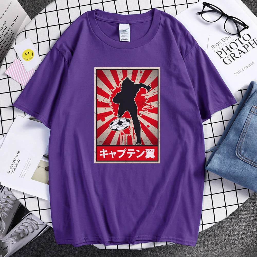 Новинка 2021, футболки с японским аниме принтом капитана Цубаса, мужские футболки Харадзюку, топы с коротким рукавом и круглым вырезом, свободная одежда