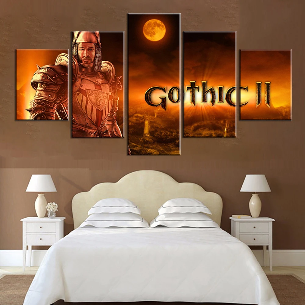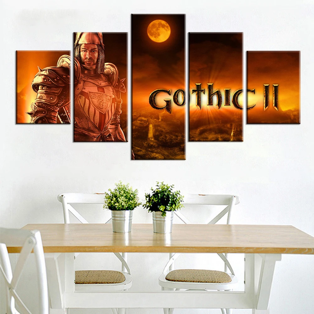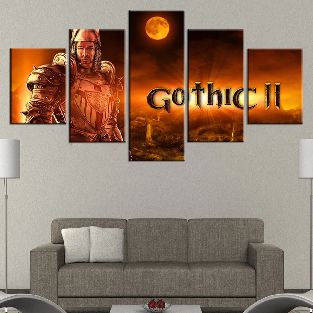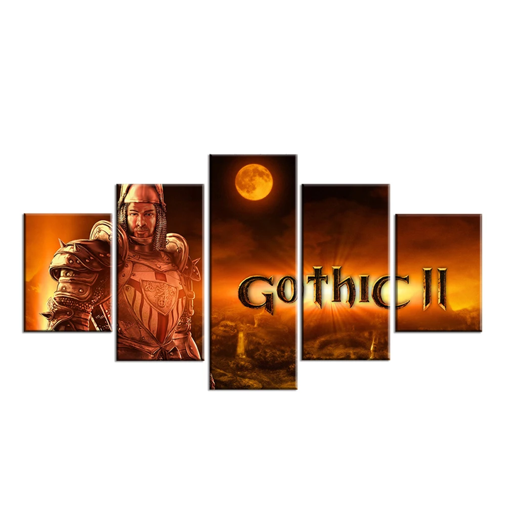 5 панелей, готический постер с 2 играми, художественная настенная живопись на холсте для спальни, гостиной, ванной, библиотеки, офиса, украшение для дома