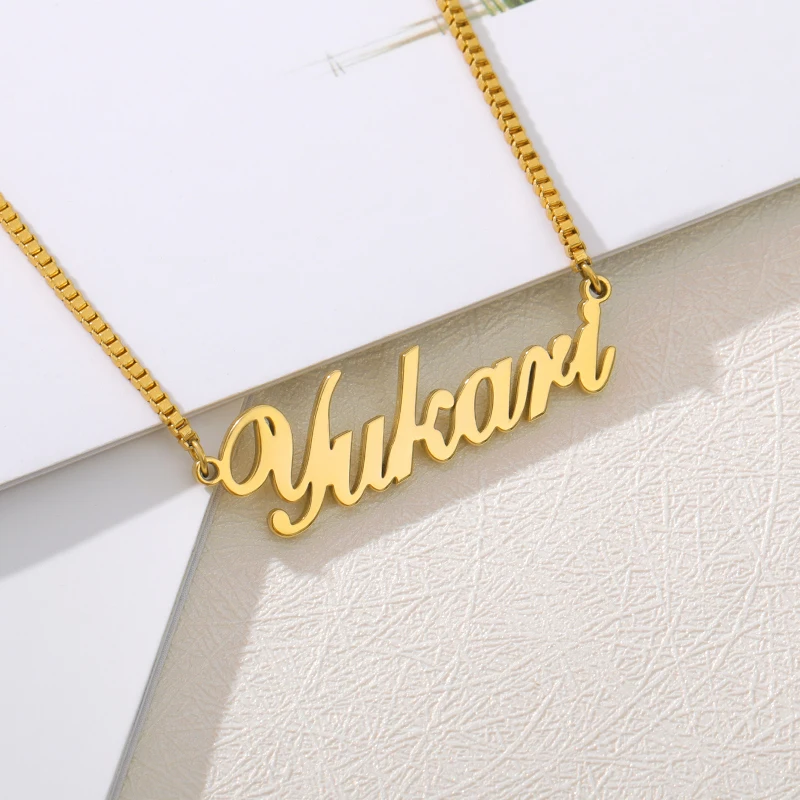 Золотая коробка, цепочка, Индивидуальные ювелирные изделия, персонализированное имя, кулон, ожерелье ручной работы, курсивная табличка, чокер для женщин и мужчин, бижутерия, подарок