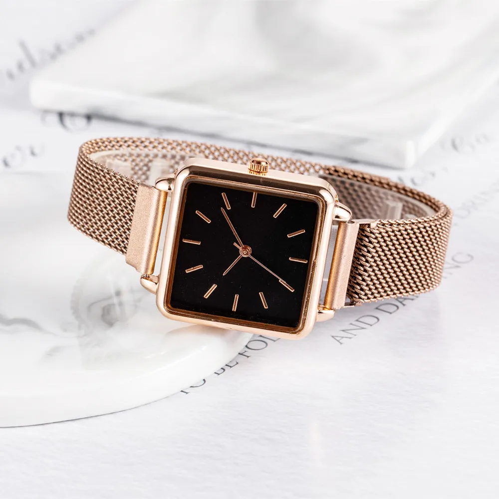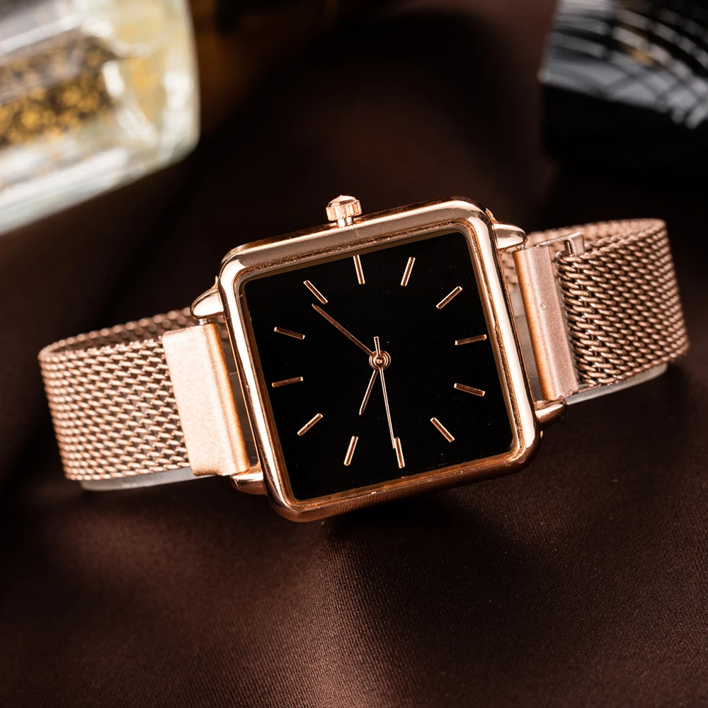 Часы женские кварцевые с магнитной застежкой, простые повседневные модные квадратные, цвета розового золота