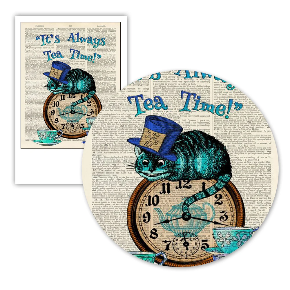 Картина на холсте всегда чай в словаре, плакаты и принты Алиса в стране чудес, картины с кошками для кабинета, домашний декор