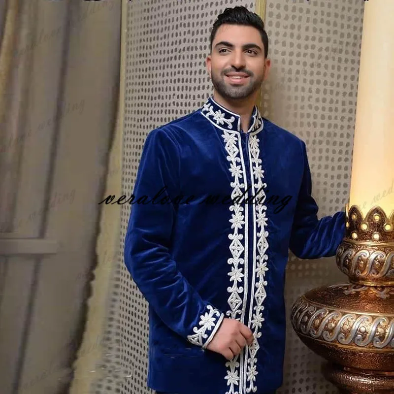Официальные мужские костюмы из Косово-албанской ткани, смокинги для жениха, вечерняя одежда для мужчин, Вельветовая темно-синяя одежда 2021