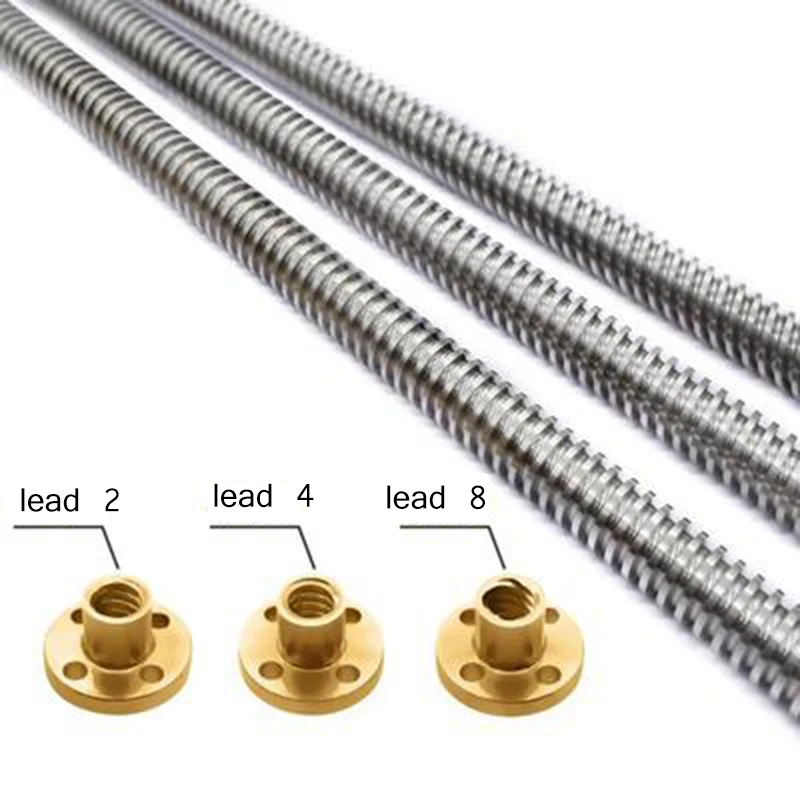 1 шт. T8 ходового винта 100 150 200 250 300 350 400 450 мм lead 1 2 4, 8, 10, 12, 14 лет, 304 нержавеющая сталь Трапецеидальный резьбовой с латунной гайкой