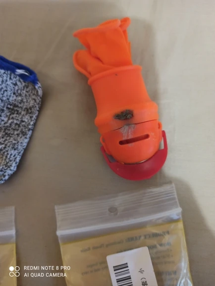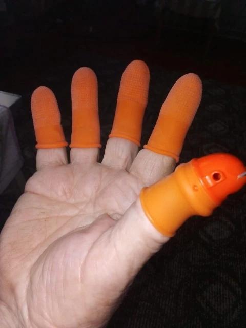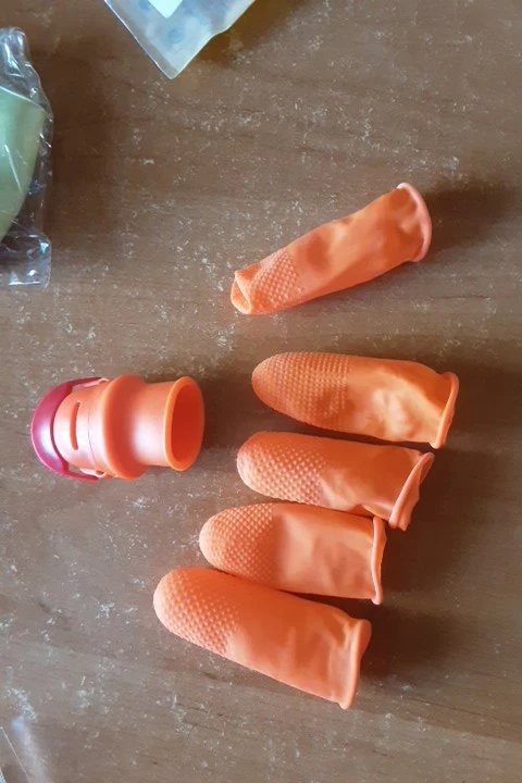 Очень доволен этой защитой для пальцев. С тех пор, как я их использовал, я не резал ни одного пальца, поэтому его действительно рабочий продукт прибыл в Сербию очень быстро. В комплект входит один Силиконовый протектор для большого пальца с ножом и 5 силиконовых протекторов для других пальцев. Рекомендовать продавцу