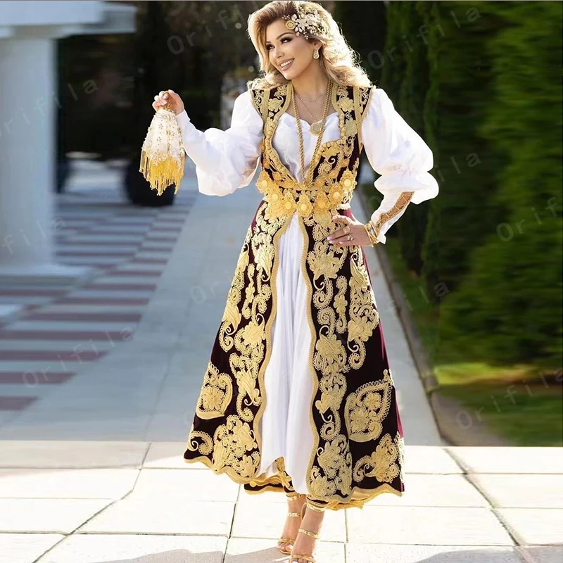 Традиционные белые вечерние платья для женщин, платья с расклешенными рукавами и кружевной аппликацией для вечеринки в албанском стиле