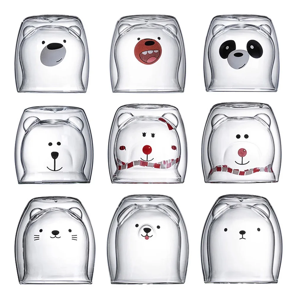 Мультяшная чашка для чая, молока, медведя, кота, собаки, животных, Мультяшные милые кухонные принадлежности, рождественский подарок, не ожоги, кофейная чашка, стеклянная чашка