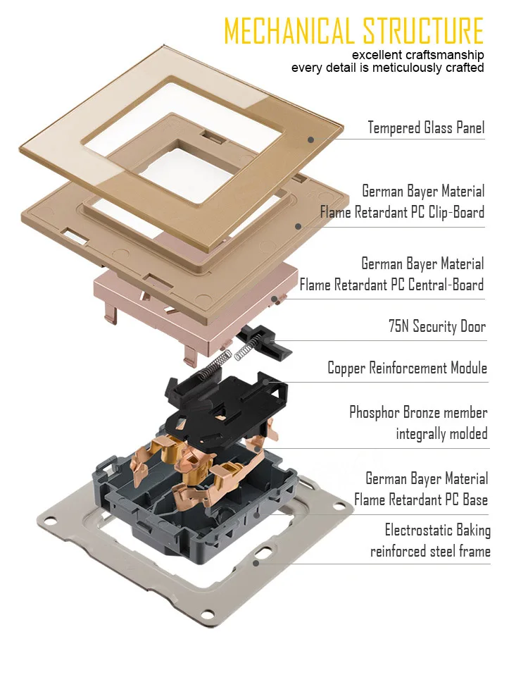 NOVSKI EU настенная розетка из хрустального стекла Панель, 16 ампер...